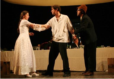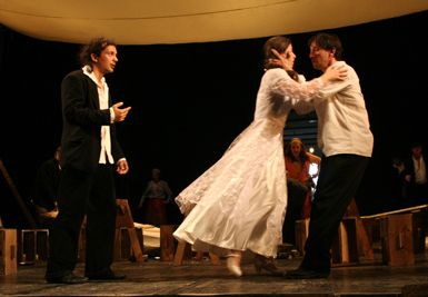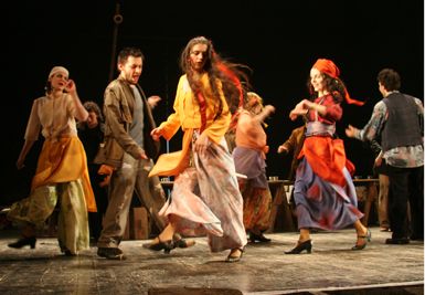 Az előadás nem előre megírt drámai szöveg alapján készült, hanem cigány mesék, történetek és legendák füzéréből építkezik, a dalszövegek alapjául F. G. Lorca Cigányrománcok című műve szolgált. Az előadás egy laza, dialógus nélküli színpadi történet köré szerveződik, amelynek középpontjában egy esküvő áll, a hozzá kapcsolódó előkészületekkel és vele járó bonyodalmakkal.