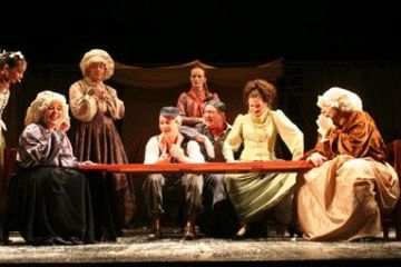 A helyszín egy velencei terecske, télen, a karnevál idején. Ez az a szint, ahová a házak bejárata nyílik, aztán a balkonok, a teraszok magassága képezi a második szintet, ahol az eladósorban lévő lányok - akiket a társadalmi konvenciók az otthoni falak közé zárnak - nemcsak megjelennek, hanem be is kapcsolódnak a terecske szintjén zajló játékba. A terecske tehát nem csupán házakkal körülvett, behavazott porond, hanem homlokzatok, lépcsőjárások, erkélyek és ablakok együttese. Teljessé ezt az együttest a komédia plebejus figurái teszik, akik korális megjelenésükkel, jellemükkel, beszédükkel, foglalatoskodásukkal a környezet alkotóelemeiként népi közösséget reprezentálnak.