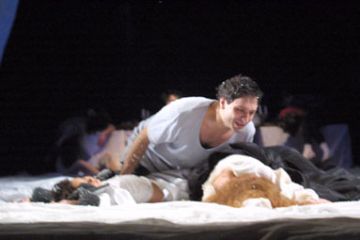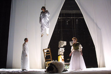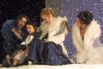 A történetbe sok év múltán kapcsolódunk bele újra, Perdita (Fodor Edina) – a csecsemő, akit megtalált fiával együtt (Mufurc – Hatházi András) nevelt egy pásztor (Galló Ernő f.h.) – felcseperedett, és mindenkit elámít vélt származását meghazudtoló szépsége, nemessége. Florizel királyfi (Ráduly Csaba f.h.) beleszeret, és elhagyja érte apja, Polixenes királyi udvarát. A király, a hű Camillóval együtt, álruhában meglesi a pásztorok ünnepét, és haraggal veszi tudomásul fia vonzódását egy egyszerű pásztorlány iránt. Camillo, aki rájön Perdita kilétére, a fiatalokat Szicíliába küldi, ahol Leontes tárt karokkal fogadja elveszettnek hitt lányát, és Hermione szobra életre kel. A megbocsájtás, a feloldás pillanata lehetne ez, ha a történetet mindvégig mozgató figura (Molnár Levente) nem gördítené a nézőtér és a színpad közé az áttetszőség, a látomás, az álomszerűség tüllfüggönyét. És számunkra nem marad más, csupán a feloldatlanság feszültsége.