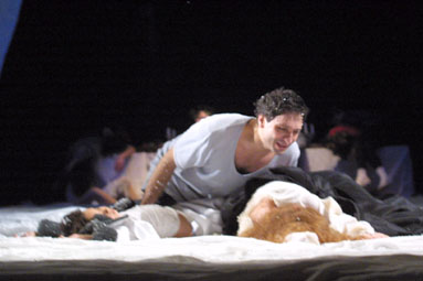 Az álomszerűen meseszép hangulat hirtelen féltékenységi dührohammá változik, rémálommá: a szicíliai király barátját, Polixenést (Tyukodi Szabolcs) és feleségét (Hermione – Kézdi Imola) házasságtöréssel vádolva küldi a halálba, előbbi csupán Camillo (Dimény Áron) hűségének köszönhetően menekülhet el. Apollo jóslata sem tudja meggyőzni Leontest képzetei hamisságáról, csupán a szörnyű látvány – szerettei holtteste – ébreszti fel zavaros állapotából. Már késő, egyetlen utódját, a fattyúnak vélt csecsemőt távoli partokon hagyta sorsára.