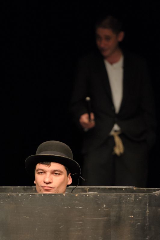 Két férfi találkozik egy kútnál, amelynek a mélyéből egy kutya hangja száll föl időről időre. A kútban élő névtelen kutya és a saját életük folytatását nem találó férfiak váratlan találkozása sajátos hármast teremt, amely az egymásra utaltság, szeretet- és kapcsolat-hiány élethelyzeteit bontakoztatja ki a néző előtt. Finom szövésű dráma, amely a világ ismert színházi műhelyeiben folyamatosan játszott Matei Vișniec egyik legmeggondolkodtatóbb műve. Kiváló szerepek, virtuóz dialógusok, igényes humor két, kiváló formát mutató színész és egy igen tehetséges fiatal rendező kezén – minden adott a mindenkit befogadó és megszólító színházi esthez.