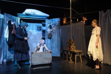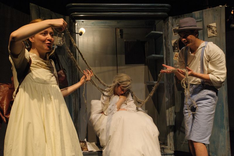 Egy jól kidolgozott, az apró részleteket gondosan megkomponáló, mégis könnyedén sikló, a világ fölött lebegő színházi produkcióval van dolgunk, ami arról győz meg: nincs szükség a néző szemébe világító reflektorokra, sem alpári kifejezésekre ahhoz, hogy új, a közönségnek (kellemes) meglepetést okozó előadást vigyünk színpadra. (…) Zárt, súlyos, mégis könnyedén lebegő világot hoz elénk, amelyet áthat a sajátos, nyílt, gyermeki világlátás. Csodálkozunk, hogy ilyen világ is létezik, és a gyermeki nyíltság őszinteségét mi nézők is átvesszük, egyszerűen csak lebegünk, hagyjuk, hogy az előadás számtalan apró, felsziporkázó nyomot hagyjon bennünk, mert már az elején sejteni lehet: e nyomok az előadás vége után is felizzanak még. (…) Az előadás egészét, és a színészek alakításait is meghatározza a képek egymásutánjából építkező hullámzás és lebegés, amelyhez jól illenek a térformáló elemként működő fehér függönyök, vásznak, a vásznakra vetített képek, vagy a mögöttük felsejlő árnyak. Emlékezés, valóság és álom határmezsgyéjén járunk az előadás teljes időtartama alatt.