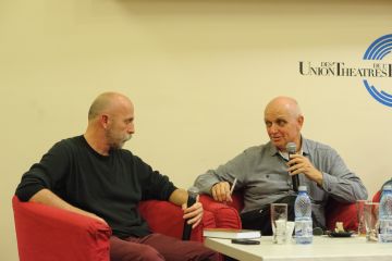 György Péter Erdély-könyve (Állatkert Kolozsváron – Képzelt Erdély) méltán váltott ki nagy érdeklődést már megjelenése előtt tulajdonképpen, hiszen a történelmi traumák feldolgozásának lehetőségéről és az emlékezetpolitikák mibenlétéről írt, félezer oldalas esszékötet közelről érinti mind az erdélyi, tágabb értelemben a határon túli, mind pedig a magyarországi olvasót. A könyv megírása folyamán György Péter Szabédi Lászlót „fedezi fel”, nem csak önmagának. Az esten a színházunk archívumában őrzött, soha be nem mutatott és publikálatlanul maradt, Férj Karrier című Szabédi-darabot olvassuk fel, majd a György Péterrel beszélgetünk kisebbség és többség viszonyáról, valamint arról a lehetséges Erdély-képről, amelyet nem a különböző nosztalgiáktól áthatott képzelet, hanem a valóság kínál.