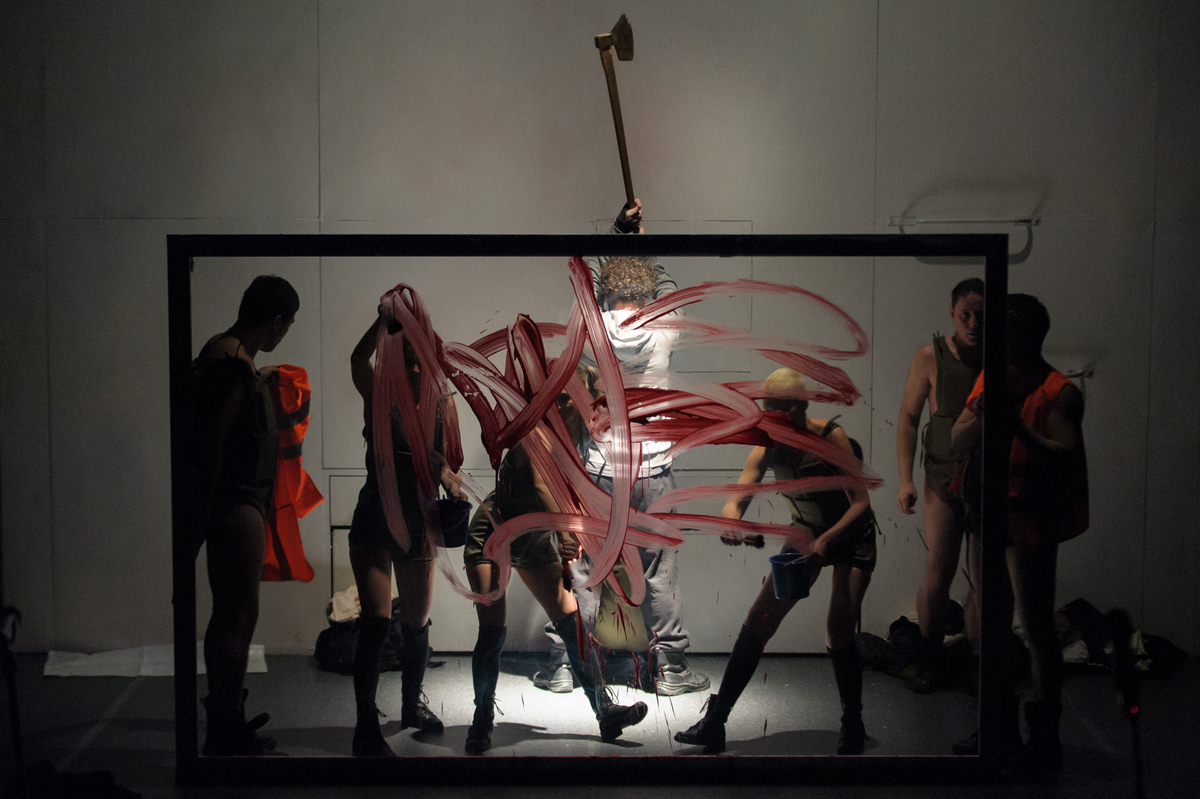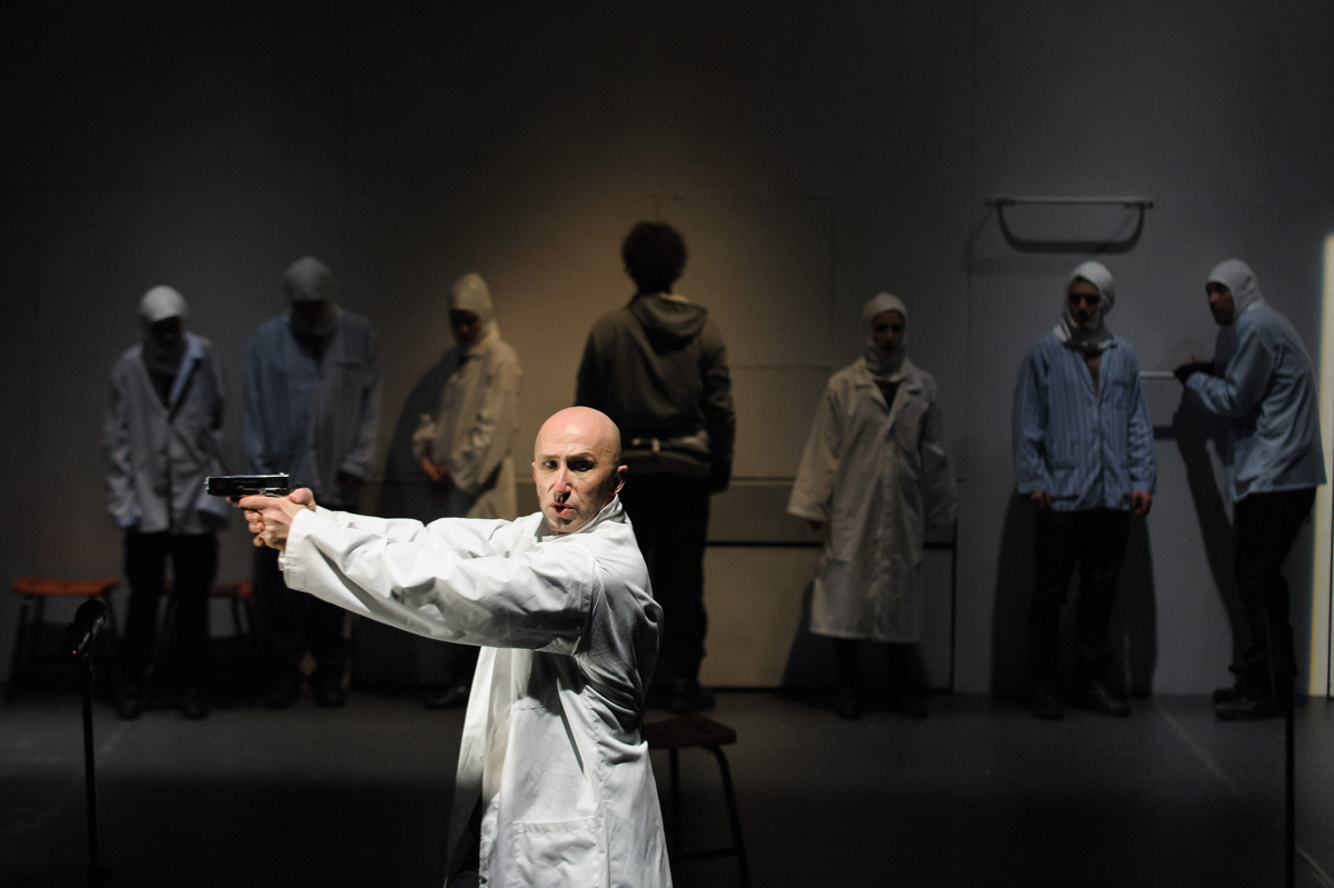 A sokfele széttartó drámai matériát a rendező, Urbán András, ha úgy tetszik, még megfejeli néhány újabb jelentéssíkkal. Az avantgárd, groteszk, experimentális színház kortársi tartalmakkal telítődik; akcionalista politikai színházat látunk, amelyben a szereplők, mikrofont kapva a kezükbe, harsányan és harsogva tiltakoznak bármiféle diktatúra személyiséget nyomorító túlkapásaival szemben. Máskor a női kiszolgáltatottság, fizikai-lelki alávetettség elleni protest-szólamok hangzanak el, ugyancsak akciódús szcenírozásban, akárcsak Urbán szabadkai Spanyol menyasszonyában. Ritmusos, vad rockzenére, ütemes, pattogó koreográfiára komponált jelenetek peregnek, tele dinamizmussal, élettel, kirobbanó indulatokkal, durva hatáselemekkel.