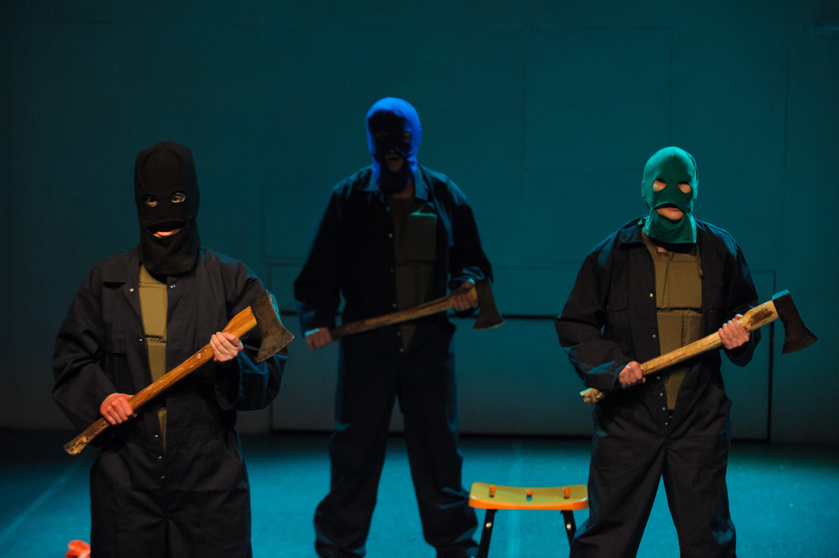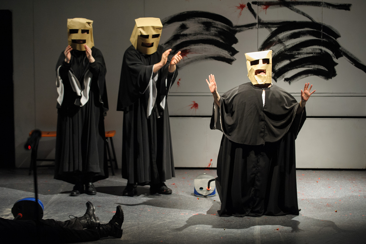 Kegyetlen komédia, szerzőjéhez illő szürreális elemekkel, mely ellen a nevetés csupán a legfőbb védekezési lehetőség. Az állatmaszkok megjelenésének pillanata eszünkbe juttatja azonban az álarcok mágikus átváltoztató hatását: feszült csend keletkezik, melyet csupán egy csikó magányos nyerítése szakít meg. Ebben a pillanatban áradnia kellett volna a nevetésnek. Ezzel szemben a jelenet inkább elgondolkodtató. És nem ez egy jó előadás legfőbb ismérve – hogy gondolkodásra késztet bennünket?
