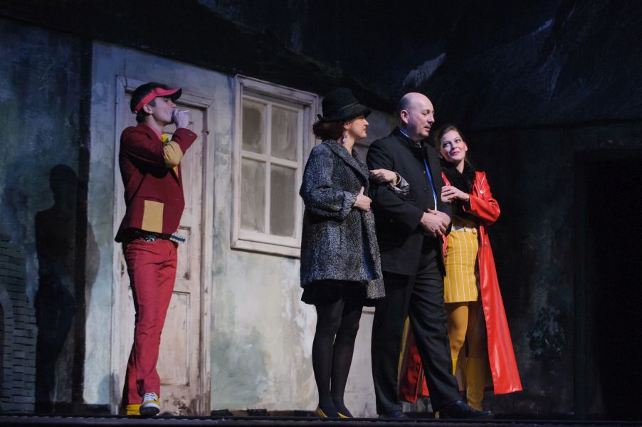 Claire Zachanassian bosszúja nem annyira az őt hajdan cserbenhagyó Alfred Illt, mint inkább ezt a vidéki kisszerűség kötelékében élő közösséget illeti, épp az imént említett romlottságának leleplezése által. A tragédia – írja Dürrenmatt – nélkülözi, sőt lehetetlenné teszi a távolságtartást, míg a komédia valósággal megteremti azt. Úgy hiszem, hogy ez a nélkülözhetetlen esztétikai távolságtartás segíthet bennünket, hogy tisztábban lássuk, és jobban megértsük azt a közösséget, amelyben élünk.