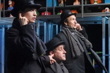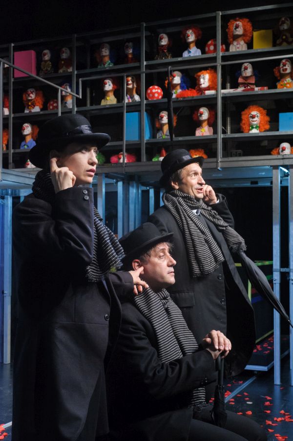 Murdoch, Zucker és Maggie – egy darab három szereplővel. Vagy inkább tizenkettővel? Számoljuk össze őket: Murdoch, Anti-Murdoch, Murdoch-Zucker, Murdoch-Maggie, Zucker, Anti-Zucker, Zucker-Murdoch, Zucker-Maggie, Maggie, Anti-Maggie, Maggie-Zucker, Maggie-Murdoch. Igen, egy legalább tizenkét szereplős színdarab, a kolozsvári magyar színház kiváló színészei, Györgyjakab Enikő, Bogdán Zsolt és Dimény Áron előadásában.