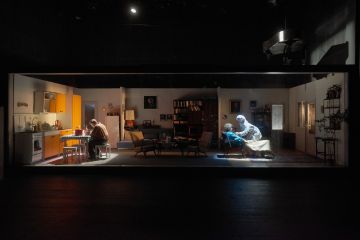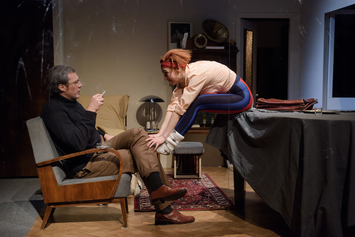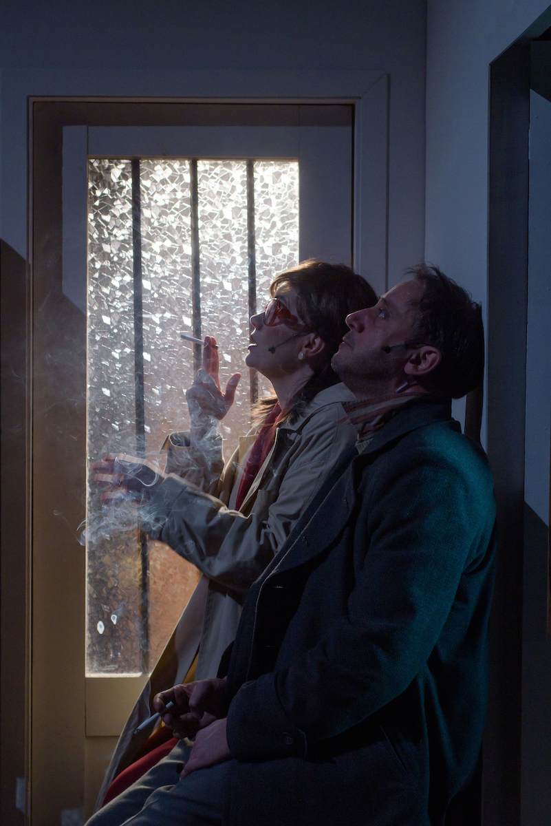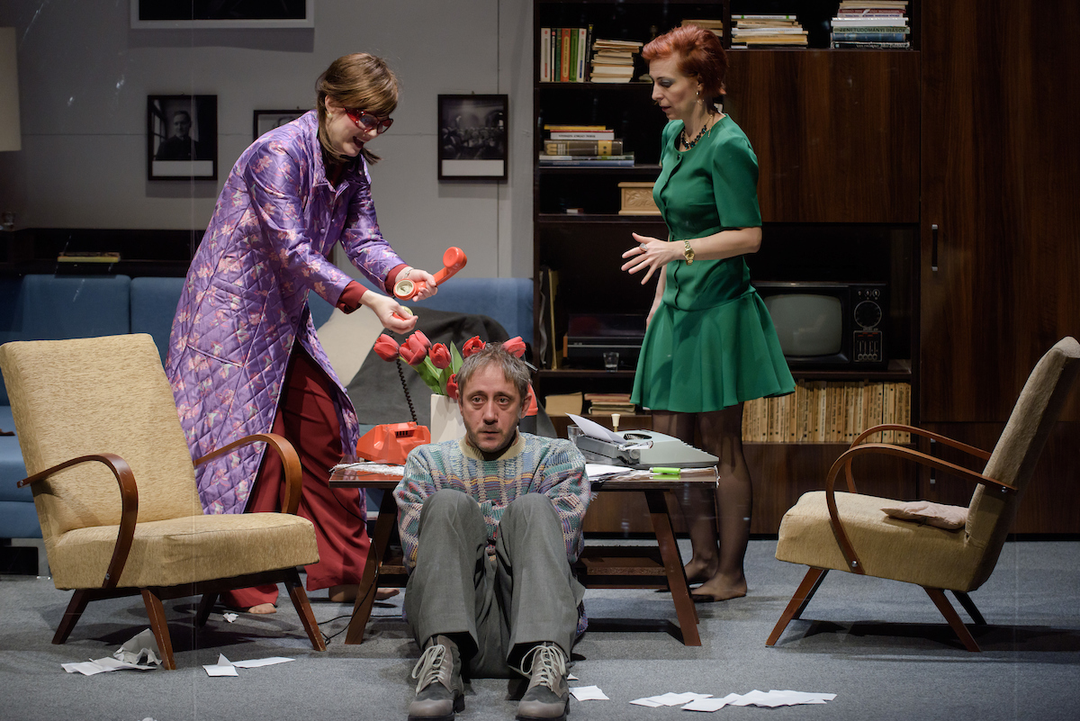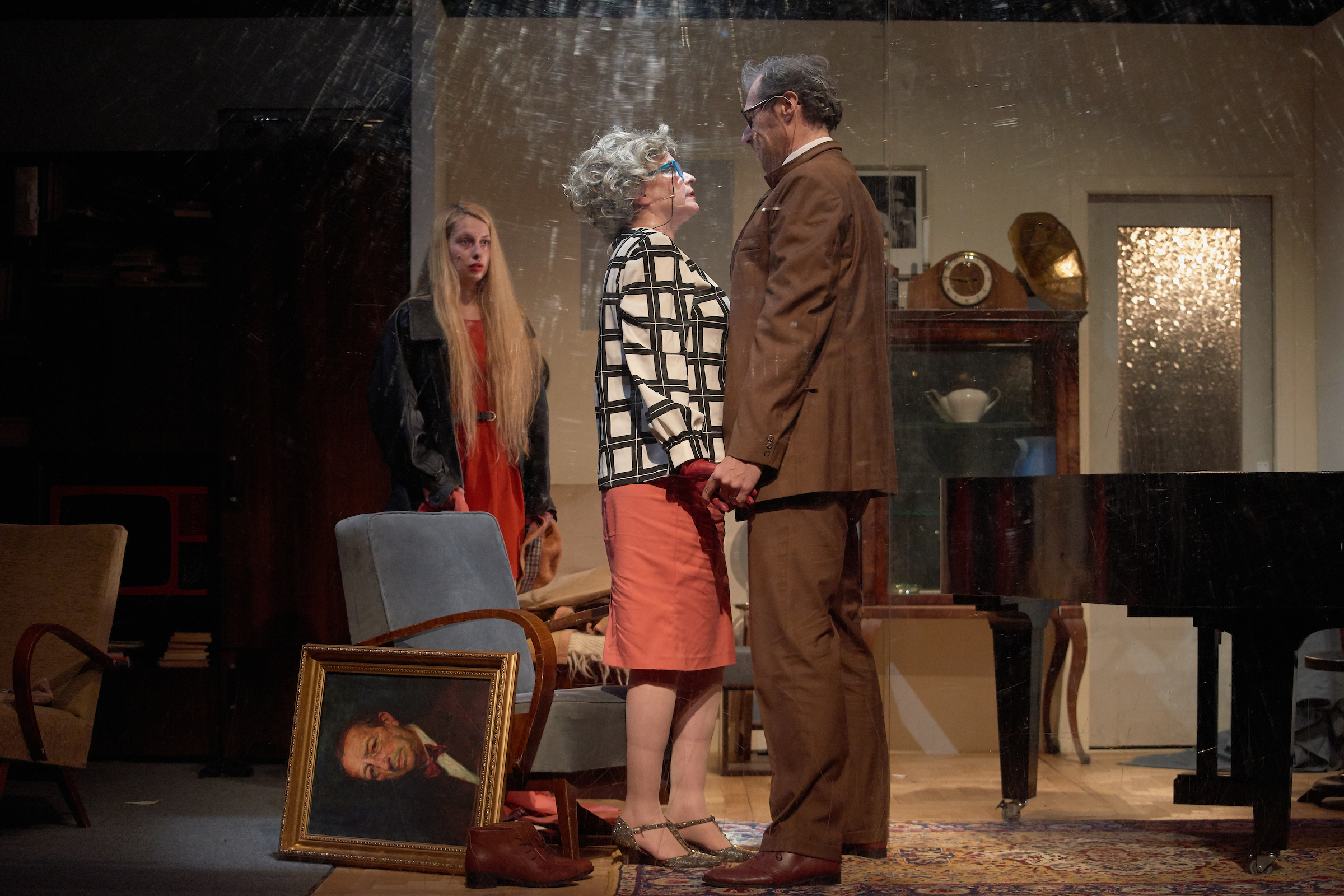 A szünet nélkül játszott kétórás előadás díszlete (Miklósi Dénes jegyzi) és jelmezei (Carmencita Brojboiu) olyan élethűen teremtik meg a nyolcvanas évek tömbházlakásának mását, hogy az időszakot átélt nézőnek a lélegzete is eláll, s úgy érzi, ott van, abban a fojtó levegőjű korban. Ehhez hozzájárul az is, hogy a nézőtér és színpad közt a falon – mint a kommunizmus múzeumában –, üveg alatt jól ismert közéleti szereplők Securitate követési jegyzőkönyvei láthatóak, olvashatóak, tanulmányozhatóak. A játék is üveg mögött történik, mint üvegkalitkát látja a néző a játékteret, ahol a kis tömbházlakásnak berendezett térben egymást követik az abszurd és tragikus események. A kis világ minden kisszerűségét megtapasztaljuk, majd megéljük e kor fojtogató légkörét, az állandó kitörési, menekülési vágyat, amit ideig-óráig lehet tiltott szerelemmel és a kommunista hatóságok által tiltott luxus élvezeti cikkekkel kompenzálni, de végül a nagy, a végleges kitörés vágya, az útlevél marad az a cél, amelyért semmi sem tűnik nagy árnak.