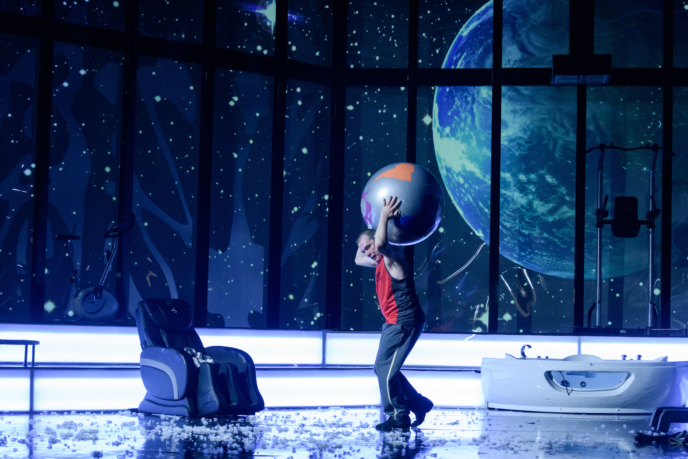 Magávalragadó dinamikája, frenetikus zenéje és futurisztikusan hig-tech díszlete tetőzte Moliére jólismert humorát. Még nem láttam Bács Miklóst ennyire rászabott szerepben. Mert a szemtelenül gazdag, nagyképű és nagyszájú Jourdain úr szerepe remekül illett alkatához és hangorgánumához.