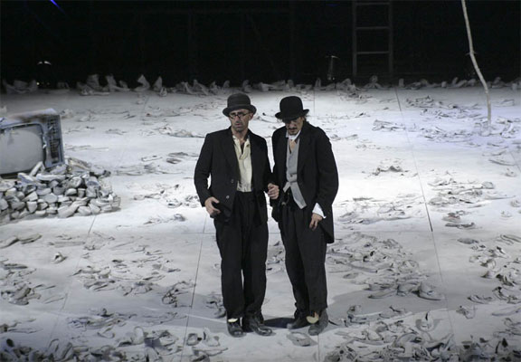 A darab bizonyosság nélkül hagy bennünket, akárcsak Beckett egyik leghíresebb, Godot-hoz fűzött kommentárja: „Van egy gyönyörű mondat Szent Ágostonnál… Ne ess kétségbe: az egyik lator üdvözült. Ne reménykedj: az egyik lator elkárhozott.” Akárcsak a Lear király, a Godot-ra várva is kérdésben végződik. A kérdés pedig nem az, hogy Godot eljön-e valaha is, hanem ennél mélyebb és felkavaróbb: vajon épelméjű-e a világ, amiben élünk? Azonban miként ezt a darab is megerősíti: a kérdésnek kérdésnek kell maradnia, arra nem érkezhet válasz – nehogy erőt vegyen rajtunk a bizonyosság nagyképu feltételezése, vagy a kétkedés reménytelensége.