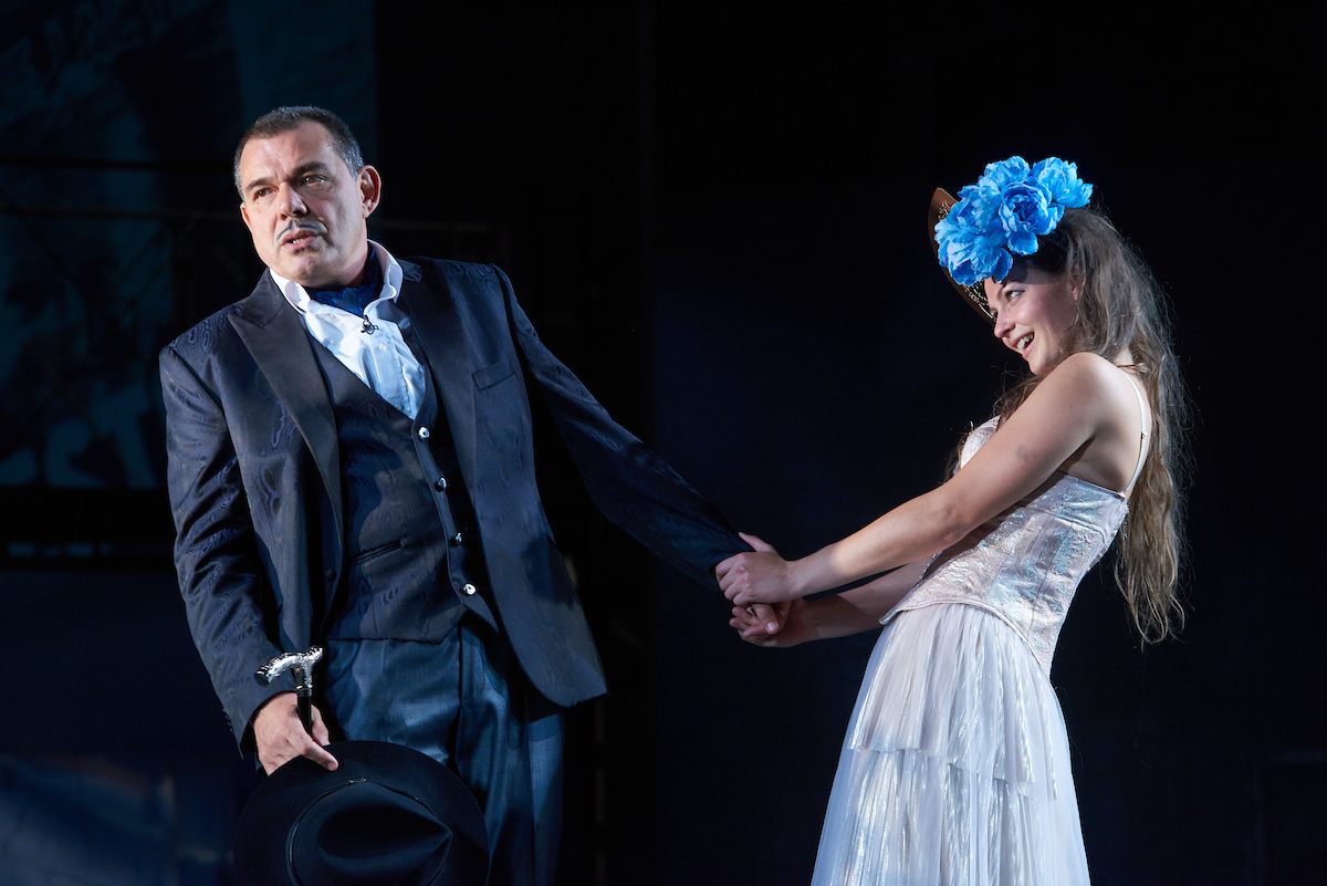 Eszenyi nagyvonalú, erősen teátrális látomásban fogalmazta színpadra est a groteszk tragédiát, monstrumdrámát, sajátosan elegyítve a 19-20. század világát mai elemekkel. A nagy társadalmi tablót, melyet vad és elementáris epizódok tördelnek, remek színészi játék tartja össze: a majdhogynem végig színpadon levő Imre Éva Luluja és az ő sorsát alakítók-kísérők színpadias kavalkádja.
