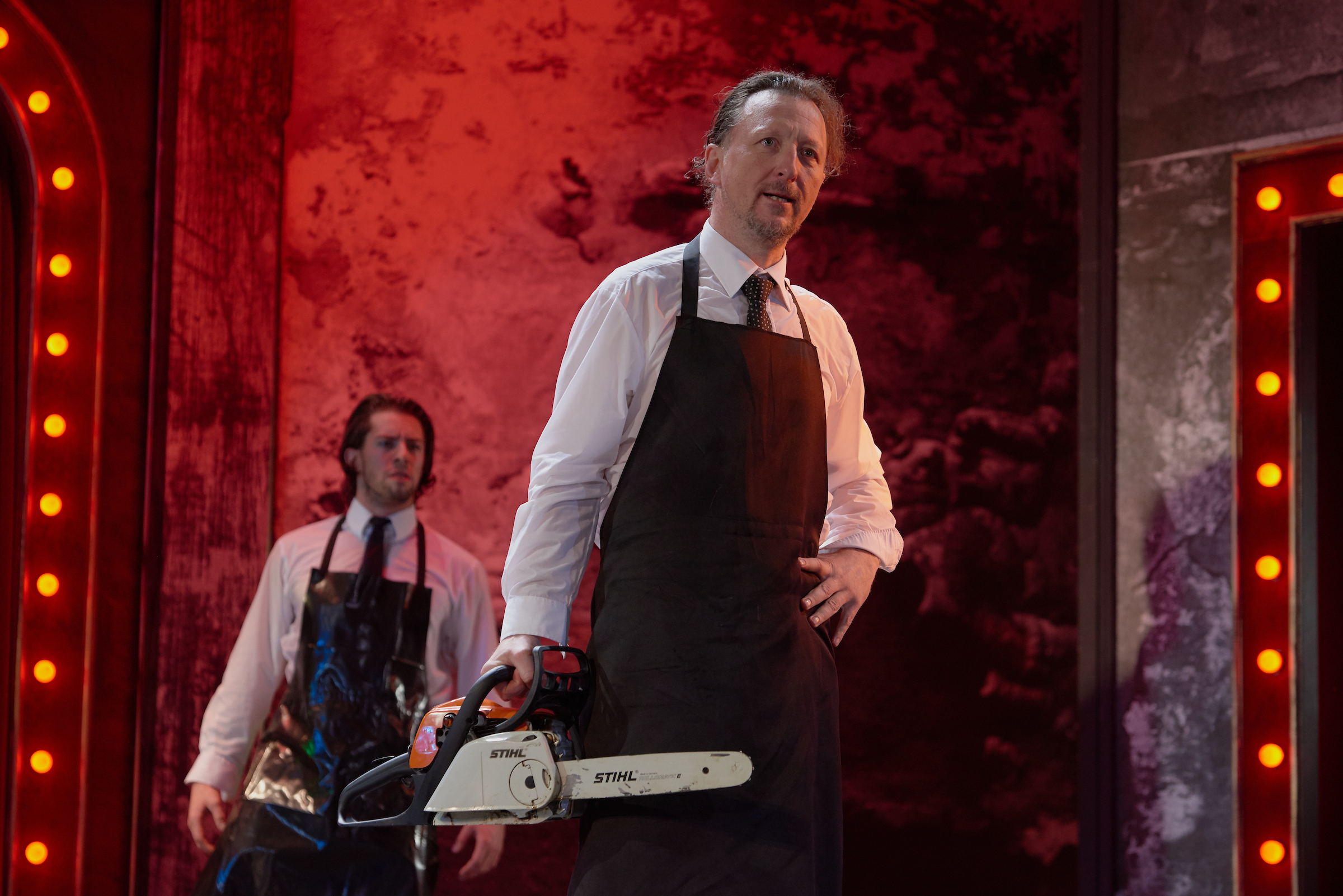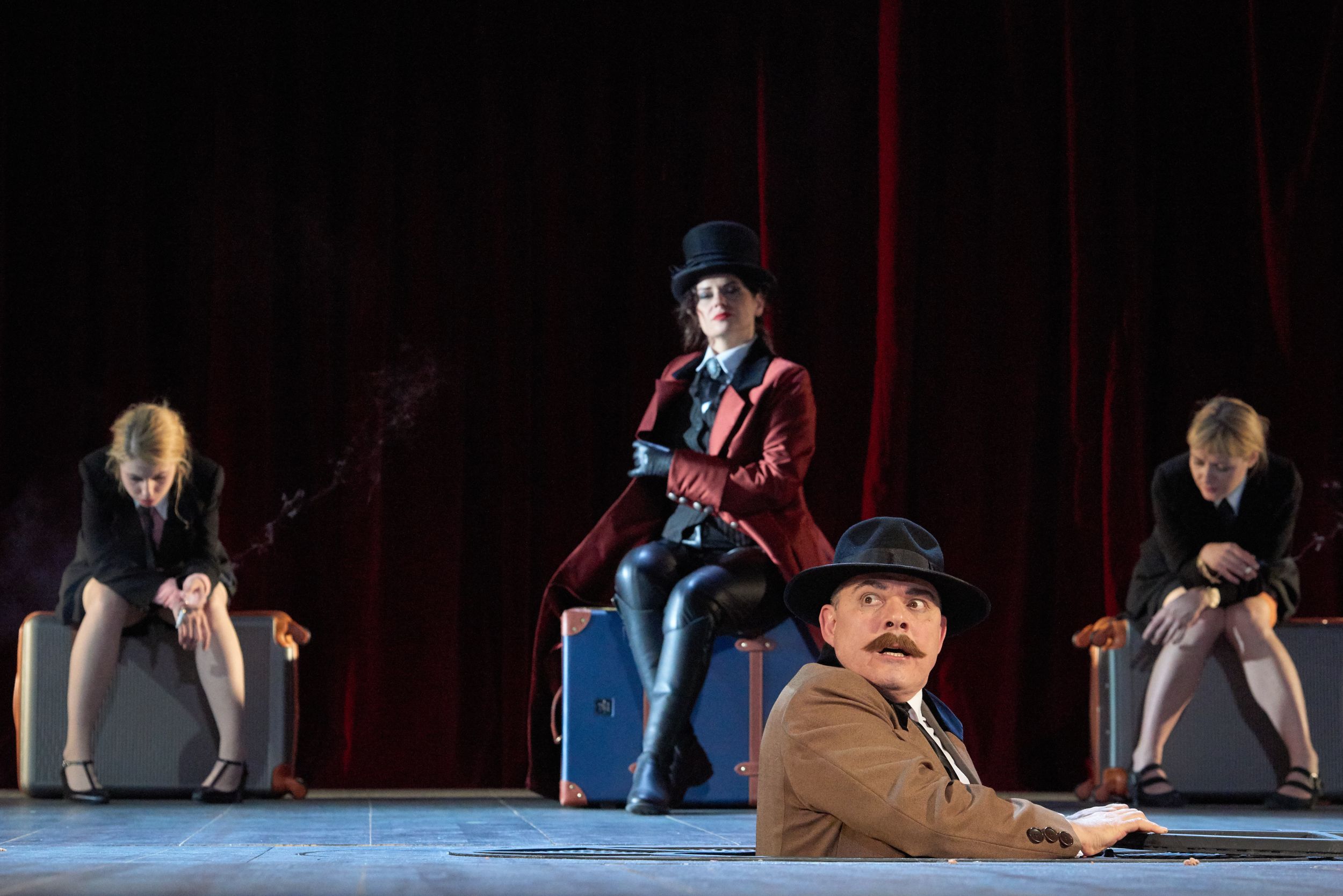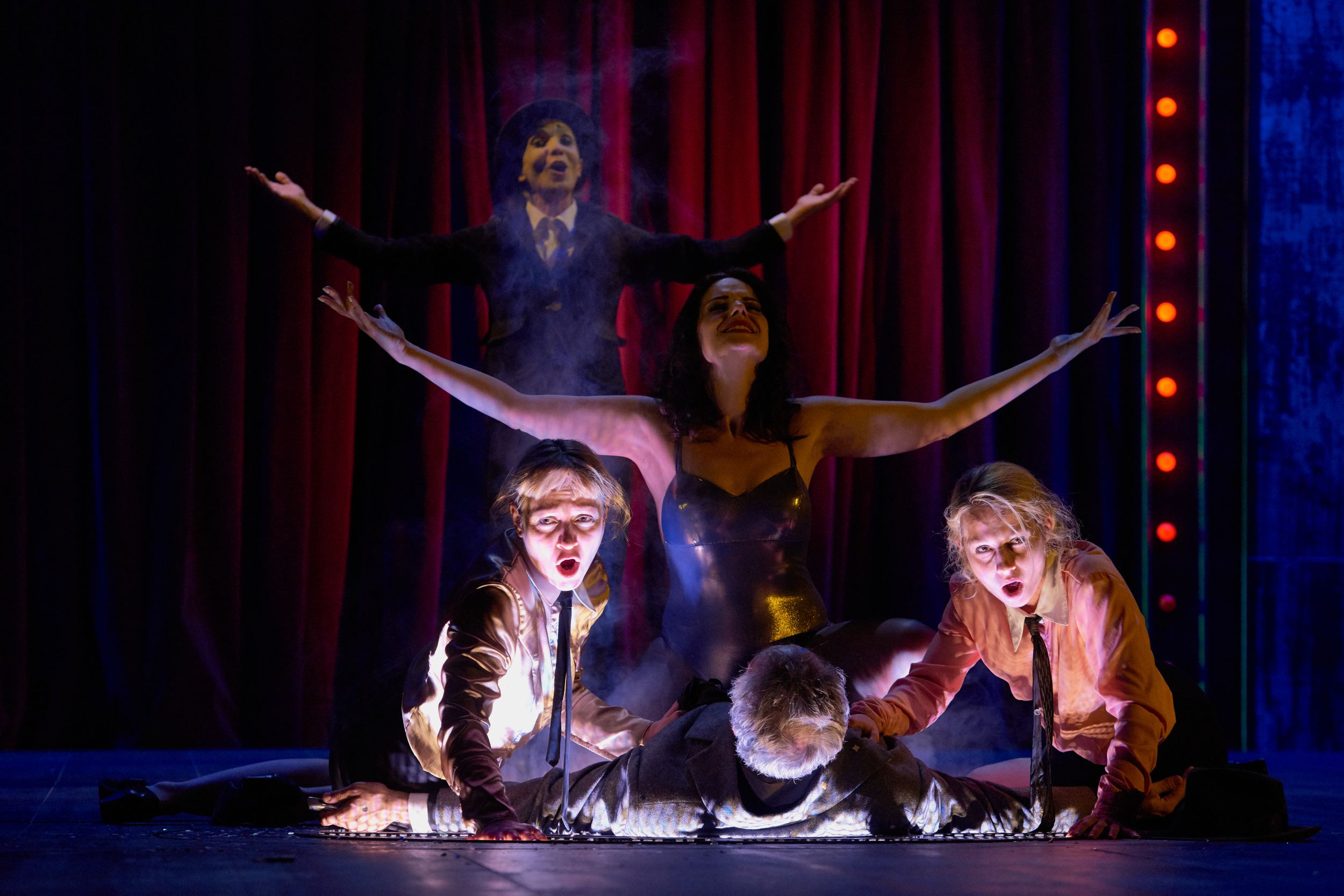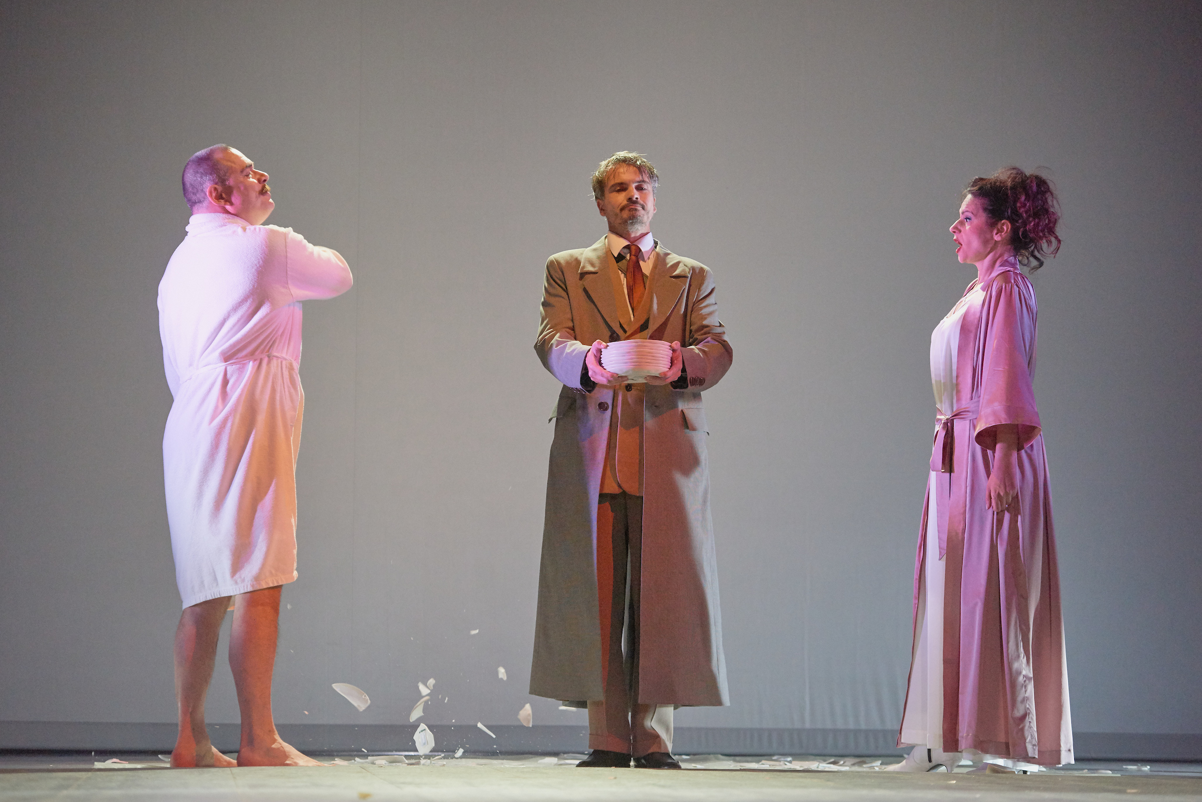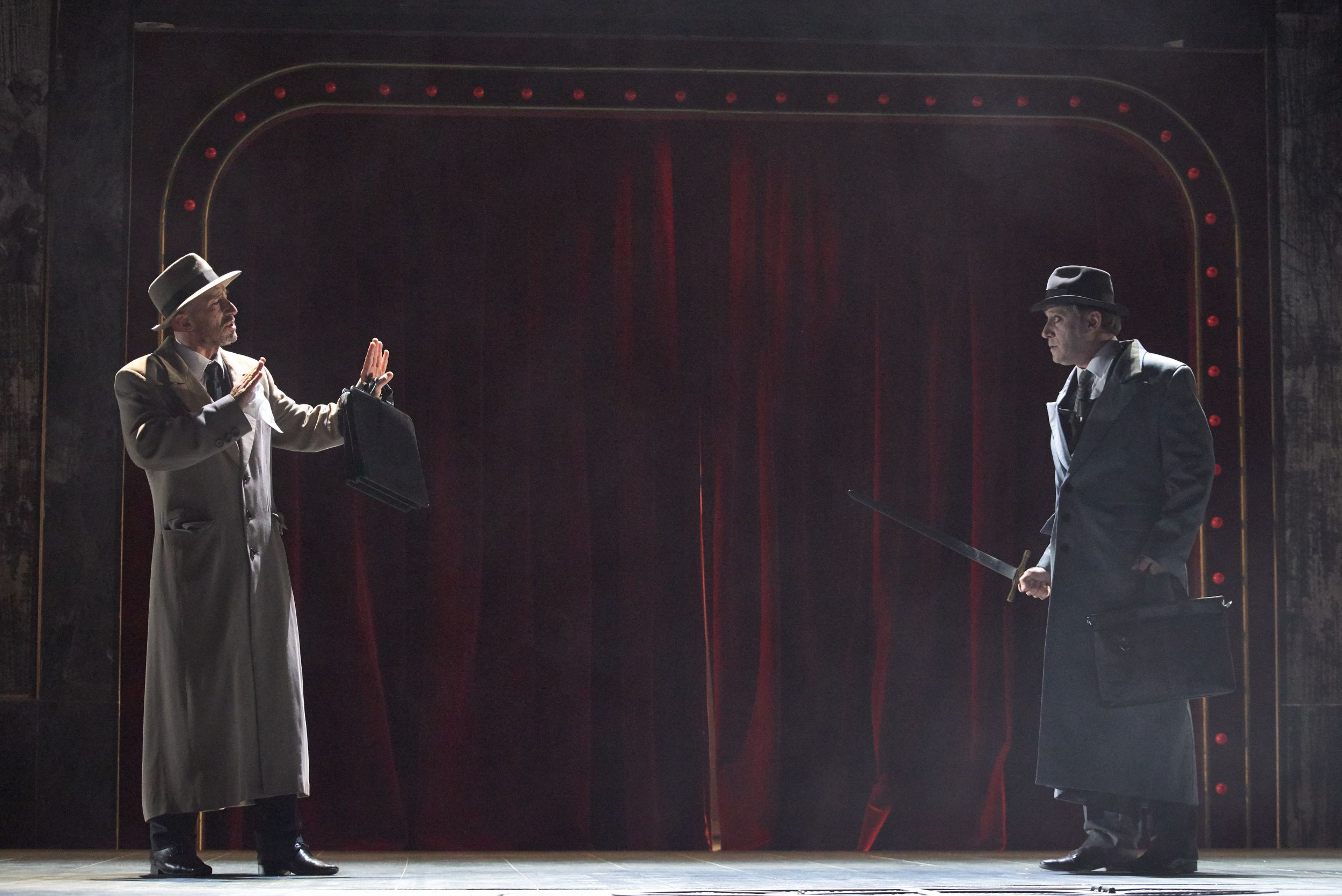 Helmut Stürmer tiszta díszlete, a függönyök és a világítás markáns vörös színével, valamint Lia Manțoc rendkívüli ihletettségű és szuggesztív erejű jelmezei és a Vasile Șirli szerezte zene, amely aláfesti, leköveti és megnöveli a jelenetek feszültségét, egy Silviu Purcărete nevével fémjelzett, elsőrangú művészi előadással örvendeztetett meg bennünket.