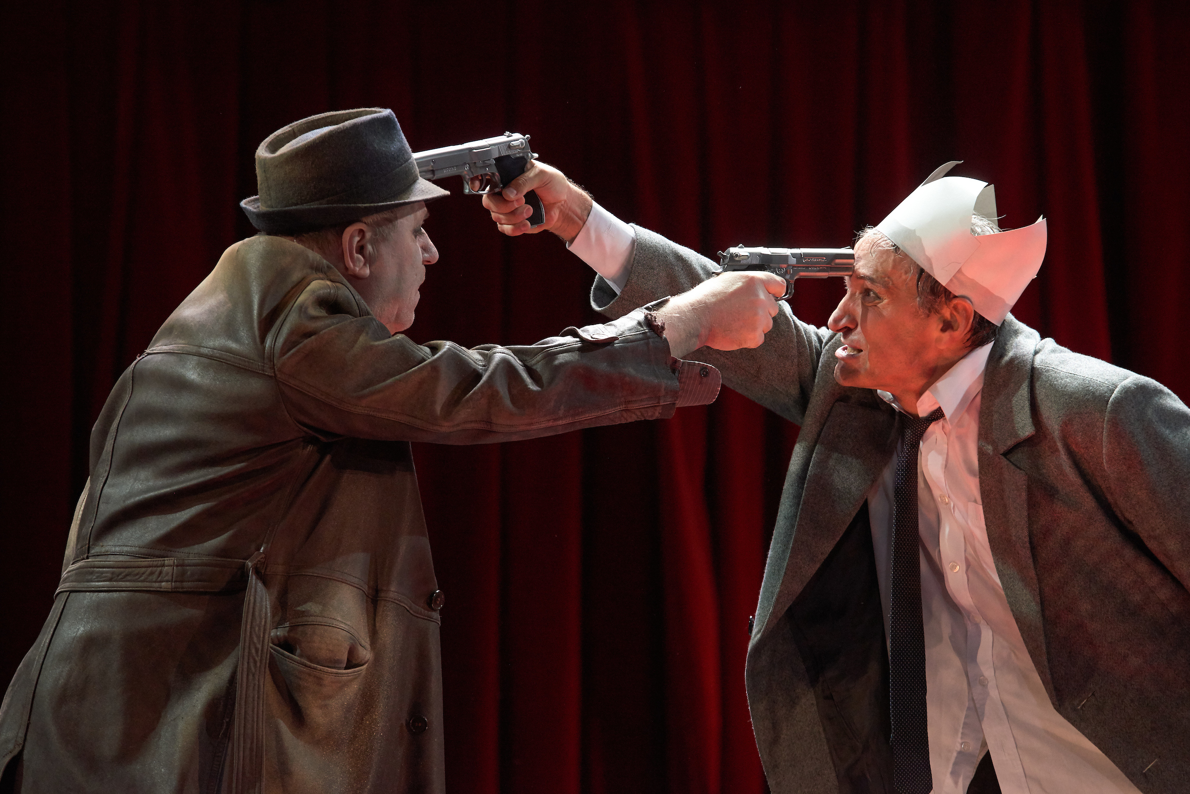 Silviu Purcărete mesteri vezénypálcájának irányításával a színészeknek sikerül maradéktalanul létrehozni azt az elidegenítő hatást, amelyben a néző tudata megoszlik a feldolgozott téma borzalmai és a nevetés között, oly módon, hogy a mészárlás története elviselhetővé válik, ám mégis ott marad a kényelmetlenség érzése, amely töprengésre késztet.