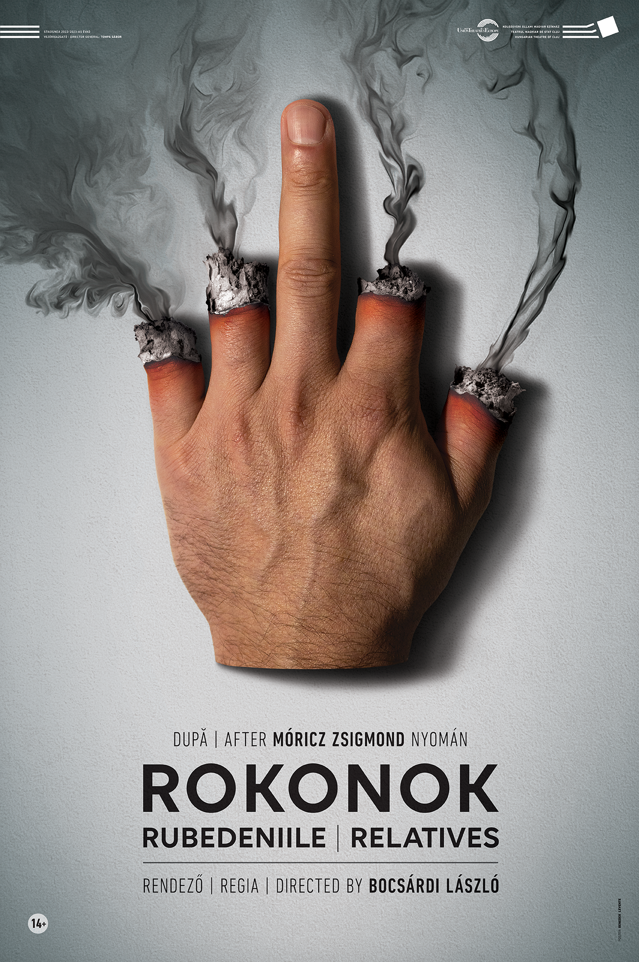 A Kolozsvári Magyar Színház Móricz Zsigmond Rokonok című regényének Bocsárdi László és Kali Ágnes által jegyzett színpadi változata Bocsárdi László rendezésében roppant időszerűséggel és magabiztos művészi eszközök használatával veti fel a társadalmi kísértéseknek engedő emberi természet örök érvényű problematikáját. A változatos emberi gyarlóságok a darab szereplőiben csapódnak le, akik az álszent törtetés realista kulcsban játszott őstípusaivá, a gerinctelen fajta díszpéldányaivá válnak, kísértésbe visznek és manipulálnak, megnyomorodott lábaikkal hágnak az erkölccsel teljességgel párhuzamos társadalmi létra fokaira. Pista (Viola Gábor), a becsületes szándékoktól vezérelt jóember hatalmi pozícióba kerülésekor jóhiszeműen hagyja magát meggyőzni, illetve felpiszkálni a korrupció szennyétől eleve sáros jómadarak eme valóságos sereglete által, meghajolván a kölcsönös függőségek szüntelen körforgásán alapuló manipulatív rendszer előtt, mely mióta a világ világ, így működik. Az érvényes közjó rovására érvényesülő személyes „jobb” szédülete elegánsan került színpadi alkalmazásra a minimalista-funkcionális esztétika mentén felvázolt jelenetfüzérben.