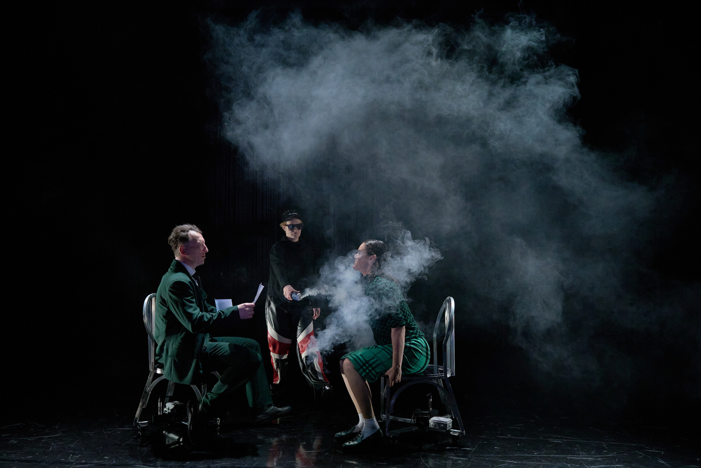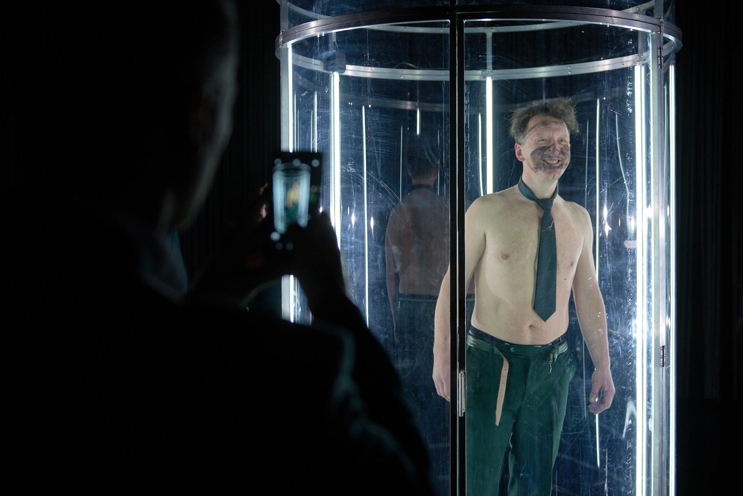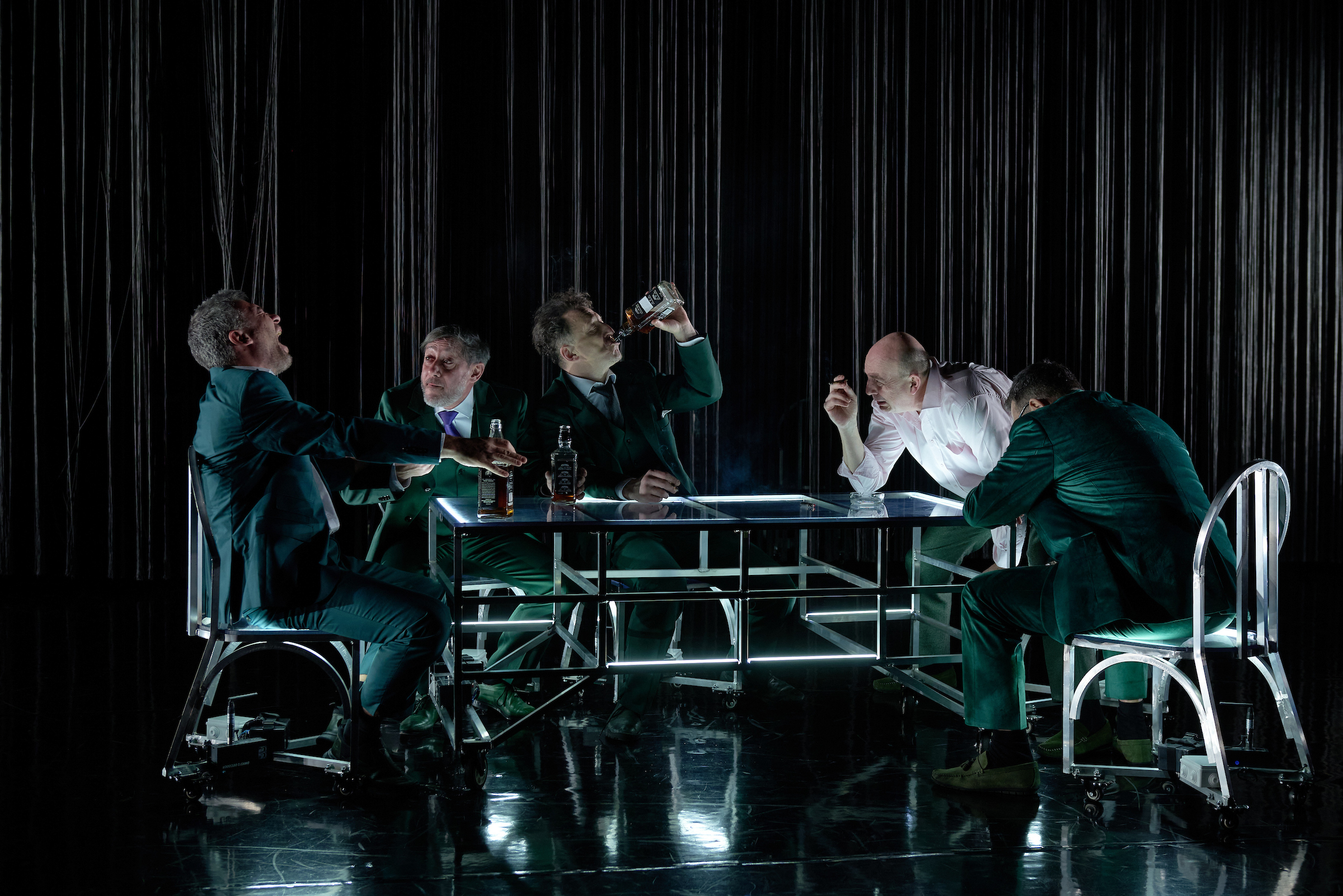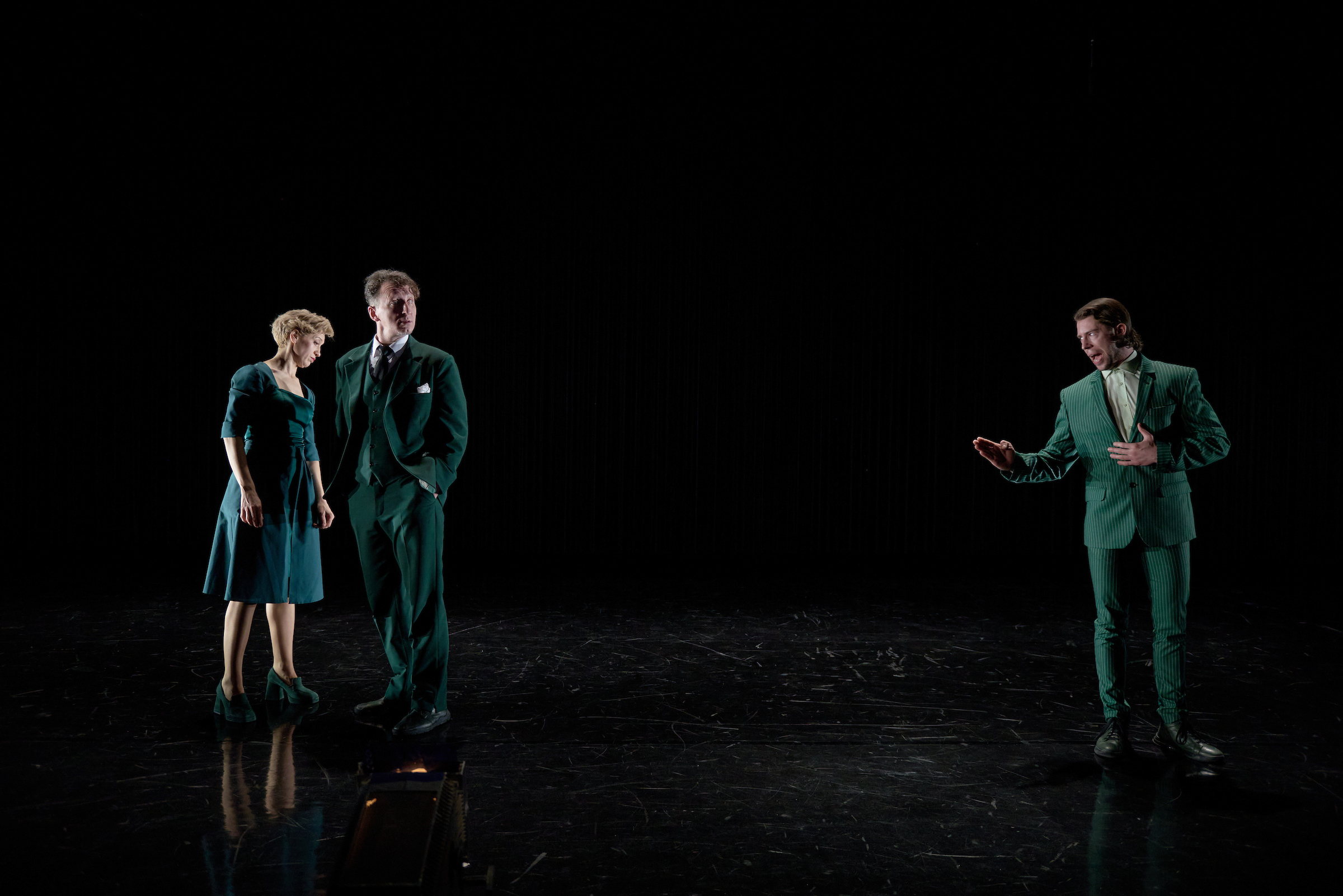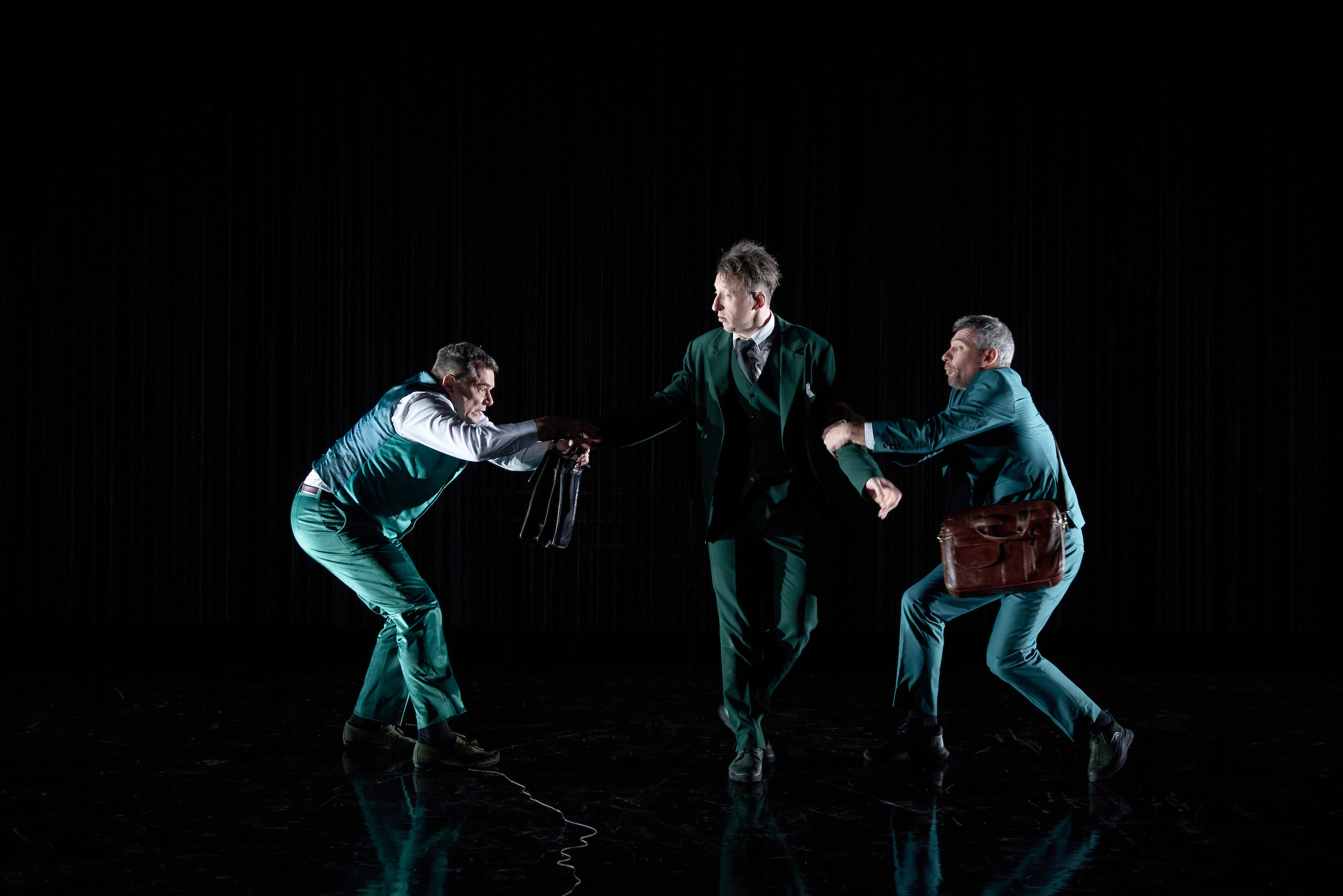 A szegény Pistát, akit nagy odaadással játszik a színpadon gyökeresen átalakuló Viola Gábor, menthetetlenül belegabalyodik ebbe a gonosz hálóba, melynek szálai mintha a jelzésértékű, óriási függönyből erednének – a végzetesen veszteséges családközi viszonyok szövevényéből. Pista felesége, Lina szerepében Györgyjakab Enikő kellemes és üdvös jelenség. Bács Miklós erőteljes játékkal festi meg az otromba polgármester arcképét, miközben az egyenzöldre festett slepp, a barátok, a földik, a pénzemberek, a városlakók mind a főügyész lelki nyugalmát veszik célba, siettetve megsemmisülését. Egyedül, avagy csoportosan igyekeznek megtörni a főhős lelki erejét, akit magába szippant a gyors meggazdagodás mámora.