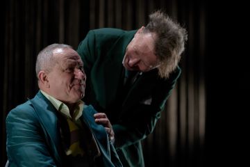 Környezet? Kapcsolatok? Rokonság... És az egyén egymaga valahol ebben a közegben elveszve. A Kolozsvári Állami Magyar Színház Rokonok előadásának rendezője - maga a fesztivál igazgatója, Bocsárdi László - is arra próbál reflektálni, milyen személyiségtorzító, semlegesítő effektusa lehet közvetlen környezetünk ránk gyakorolt nyomásának. A színpadi adaptáció —szépen szálazza szét a státuszhoz jutott kisember felemelkedését, a változásért törekvő harcát. Munkakörnyezetének hirtelen változó kíváncsiságát és a vérszagot pásztázó, bármelyik pillanatban támadó alattomosságát. A rokonság készséges segítségkérését. És a házasság versus plátói szerelem képét. Hatalombirtoklás helyett mintha összezsugorodna főszereplőnk, és saját akaratát nemhogy érvényesíteni nem tudná, mert mindig van egy felsőbb hatalom, egy kebelbarát tanácsadó, aki megmondja, azaz csak udvariasan tanácsolja, hogyan is illik élnie, döntenie ezentúl. A bűntudat érzése is befészkeli magát szivébe, mert nem képes feldolgozni, hogy ne segítsen a drága rokonságnak, főleg most, amikor lehetősége nyílna rá. A gesztusokból kiinduló nyelv és a pontos koreográfia határozza meg leginkább az előadást, amely gyönyörű képekkel, pillanatokkal engedi el a nézőt. A koncepció és szöveg szempontjából is fontos, hogy itt minden mozdulatban - legyen az hirtelen vagy lassú - ott lapul a szándék. A szándék, hogy nekünk valami kell. Üzenet és igazságkeresés helyett viszont csak egy tényként felmutatott történetet kapunk, végén egy sajátos halálreprezentációval. És talán kezdődik minden elölről...