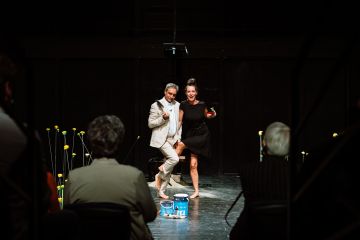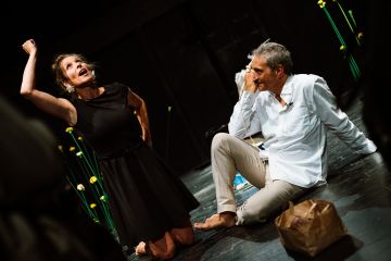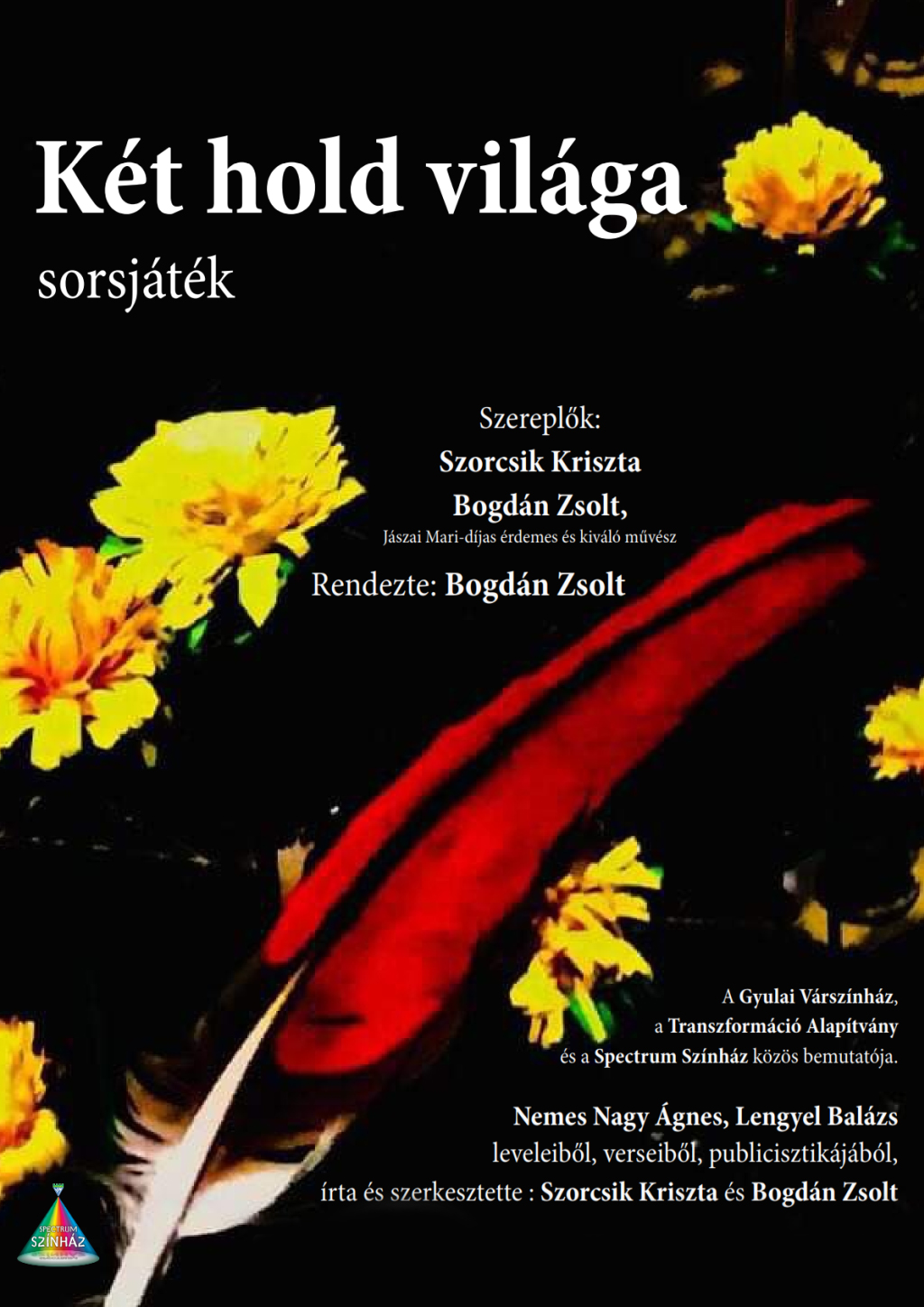 Nemes Nagy Ágnes költő mértékadó és meghatározó személyisége volt a II. világháború utáni magyar irodalomnak. Lengyel Balázs író, esszéista, irodalomszervező az Újhold folyóirat körének legjelentősebb kritikusa volt. Kettejük sorsa szétválaszthatatlanul összefonódott, és annak ellenére, hogy házasságuk válással végződött, szellemi életközösségük, barátságuk mindvégig megmaradt. Életük része volt a hangos ellenállás, majd néma túlélés a diktatúra idején, háború és fogolytábor, a „hároméves irodalom” eufóriája után a kitaszítottság, üldözöttek mentése és bújtatása… Az előadást naplók, levelek, interjúk, esszék és versek különös ötvözeteként két nagyszerű színész, Szorcsik Kriszta és Bogdán Zsolt hozta létre, és ők is adják elő. Két ember kivételes viszonyulását egymáshoz és a világhoz, fordulatokban gazdag létük stációit láthatjuk a színpadon.