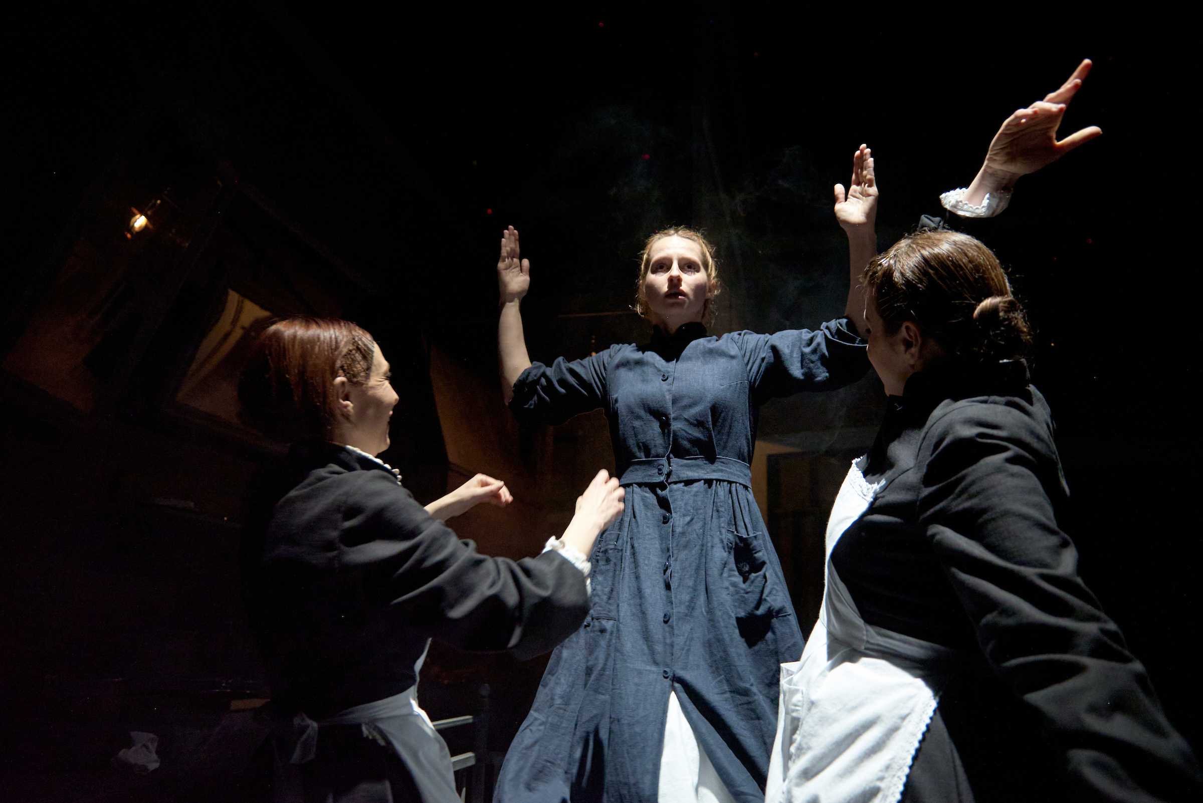A történetnek egyébként több jeles feldolgozása született már […] A kolozsvári előadás – amelyet április 5-én mutattak be – is bekerülhet a sorba, mert emlékezetesek a szerepformálások, díszletmegoldások, jelmezek, képek, hangok, dalok, táncok, mozdulatok, az előadás egésze is. Benne van a Kosztolányi által megrajzolt polgárság és allűrjeik, hisztériáik, rögeszméik. Benne van az ,,alsóbb osztályok”, a házmester (Sinkó Ferenc), a kéményseprő (Orbán Attila) és nem utolsósorban a cselédek (Vindis Andrea, Albert Csilla, Varga Csilla, Kántor Melinda, Tőtszegi Zsuzsa) világának minden frusztrációja és az azt legyőző kisded játékok, ugyanakkor minden karakter egyéni sebzettsége és ebből (is) fakadó jellemtelensége is: az urak semmi egyéni teljesítménnyel nem magyarázható beképzeltsége, gőgje, a szolganép hajlongása, simulékonysága és megalkuvása. A cselédlányokból alakuló kórus egyszerre tragikus és komikus, felemelő és vicces: emlékeztet az ókori tragédiák sokszor vészjósló, a lecsapni készülő sorsot előrejelző kórusaira, de emlékeztet egy-egy mulató kosztümös fellépőire is, akik a vendégeket borozás, koktélozás közben szórakoztatni hivatottak.