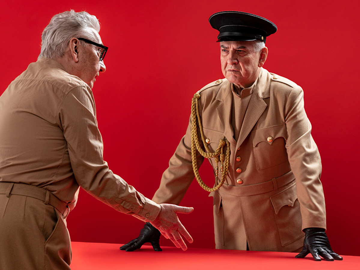 Egy nacionalista országban egy orvos felfedezi egy világszerte szenvedést okozó betegség ellenszerét, de mindaddig megtagadja a titkos képlet átadását, míg a világ összes országa örök békét nem fogad. Szembeszáll nemzetének militarista, fanatikus vezérével, aki a kisebb szomszédjával kirobbantott háború révén próbálja újra naggyá tenni országát. Orvos és fővezér egyaránt fanatikusan hisz a maga igazában, és az előadásban egyazon színész játssza őket. Egy átlagos család történetén keresztül láthatjuk a hétköznapi embereket érintő manipuláció kibontakozását is. A legnagyobb ellenség a vakon manipulált csőcselék, amelyben az egyének felhagytak a gondolkodással.