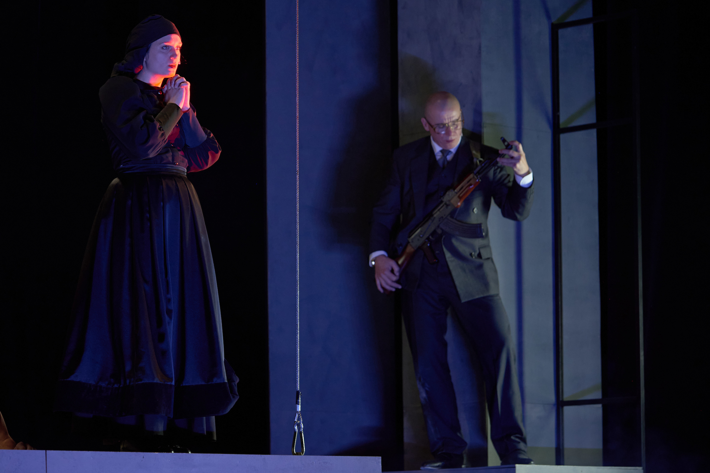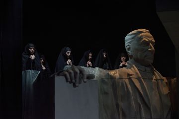 Szabó K. István rendező korábbi kolozsvári előadásában, az Édes Annában megmutatta azt a képességét, ahogyan érzékletes „élőképeket” teremt. Ezúttal szinte operai jelenetek születnek a siratóasszonyok szereplésével. Nagyon erős zenei hangsúlyt teremtő kórus szólal meg (a zeneszerző Ovidiu Iloc), amely korántsem csak háttérkép, hírvivő, hangulati eleme az eladásnak. Ismét azt kell írnom, ami talán közhelyesnek tűnik, de valóság: a kolozsvári társulat kivételesen jó csapat, és ez különösen jól látható olyankor, amikor sokszereplős darabokban a legkisebb mellékmozzanat is összhangot és egyenletes színvonalat mutat. Azaz a fő- és mellékszerep szembeállítás értelmetlen, mert mindenki úgy teljesít, hogy egy-egy villanásnak is olyan jelentősége van, mint a hosszabb monológnak.