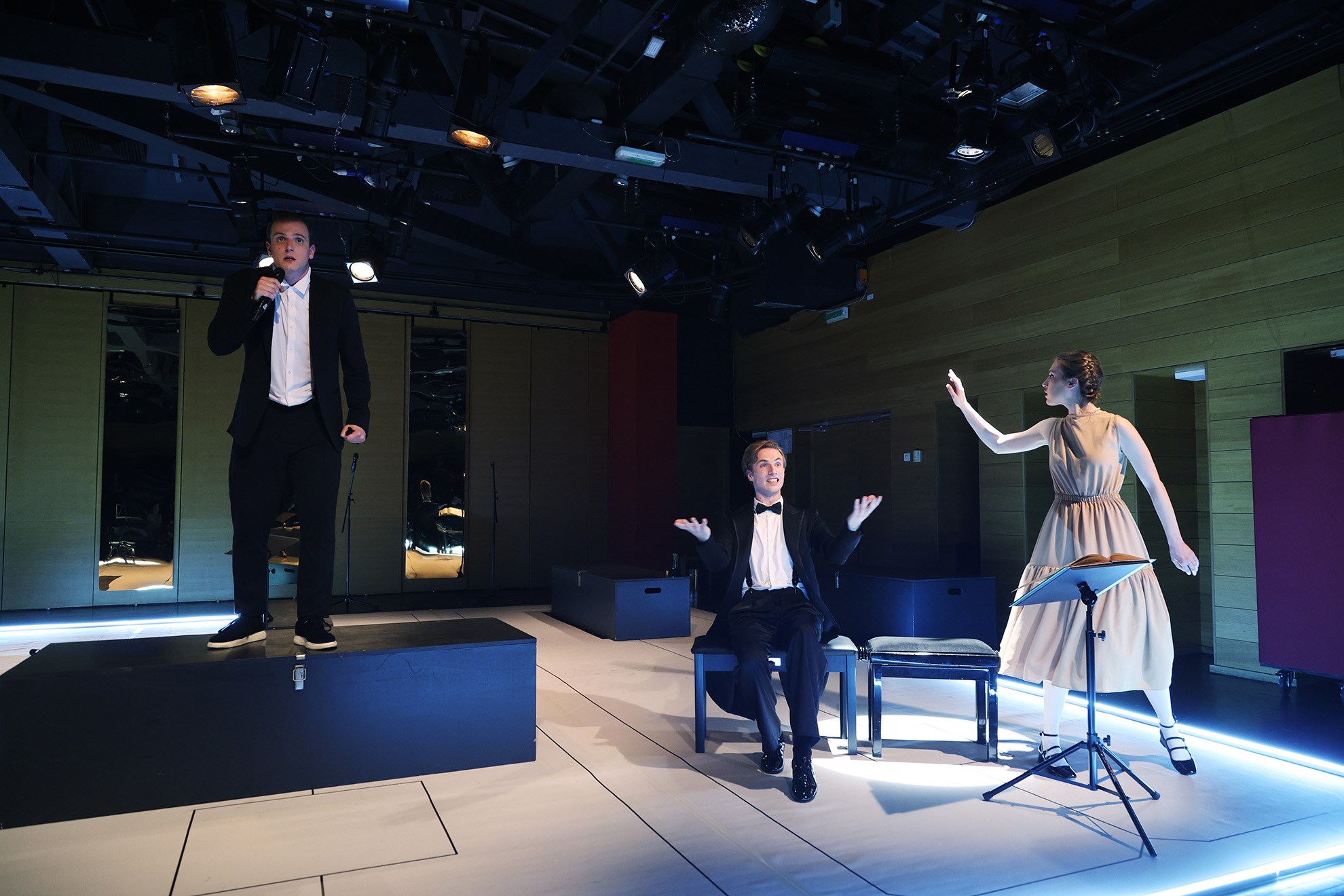 Egy művészeti ág folyamatait egy másik művészet közegén keresztül meggyőzően felidézni kifejezetten nehéz és kihívásokkal teli feladat. Különösen nehéz a zenéről a színház által beszélni, mert a zene absztrakt, a színház pedig a színészek fizikai jelenlétén és a térben való konkrét cselekvésein alapul. Ezért tűnik logikusnak a döntés, hogy azokban a pillanatokban, amikor a színészek „eljátsszák” a zongorázást, valójában táncolnak – és a táncművészet és a zene valóban összeillenek.