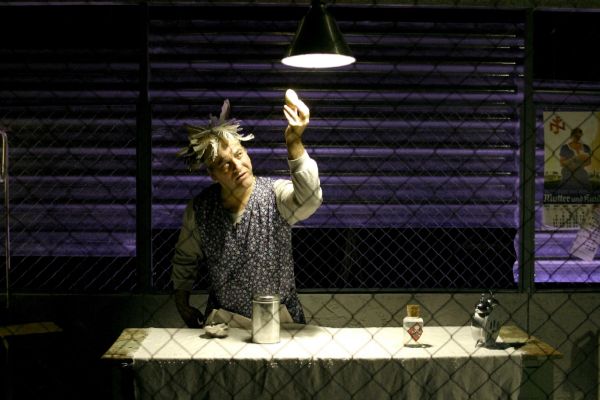 "Joseph a fiú. Saját készítésû tyúktoll-parókát és köpenyt visel. Egyértelmû, hogy ô az anya. Szüntelenül a kávéfôzô alkatrészeivel foglalatoskodik. Amikor elkészül a kávé, tölt magának, Ellának és a nézőknek. Végül átitat ciánnal egy kockacukrot és belekeveri a kávéjába. Hosszan iszik belôle és nagy robajjal összeesik. A zaj megijeszti Ellát, aki a halott ember láttán ôrjöngeni kezd, visítva letépi magáról a köpenyt, és addig rohangál körbe a ketrecben, amíg a fények kialszanak. Ella az anya."