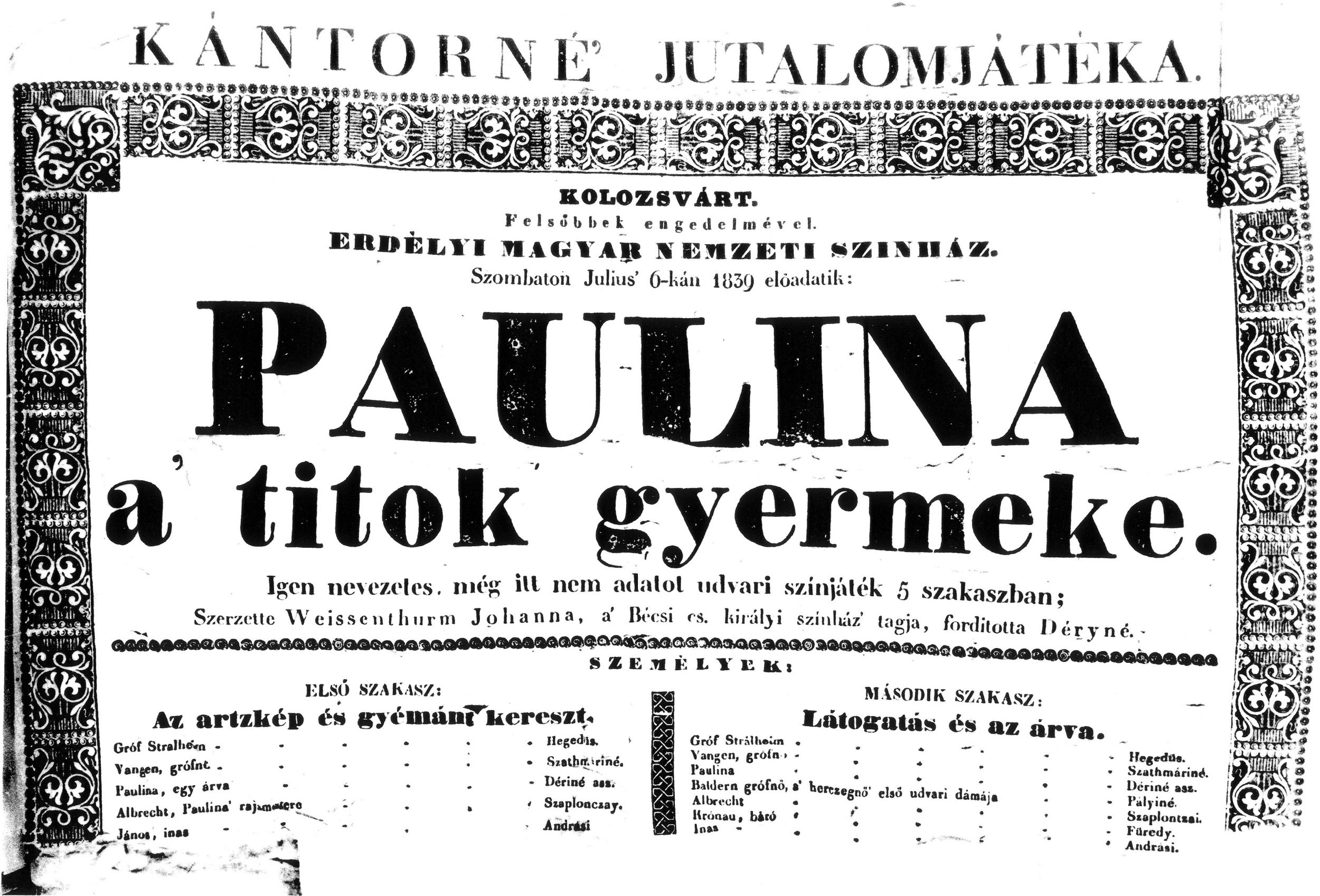- Paulina, a titok gyermeke írta Weissenthurm Johanna, 1839. júl. 6-án játszották. E darab szövegkönyvét a KÁMSZ DokTárában őrizzük, sz. 2673 jelzet alatt.