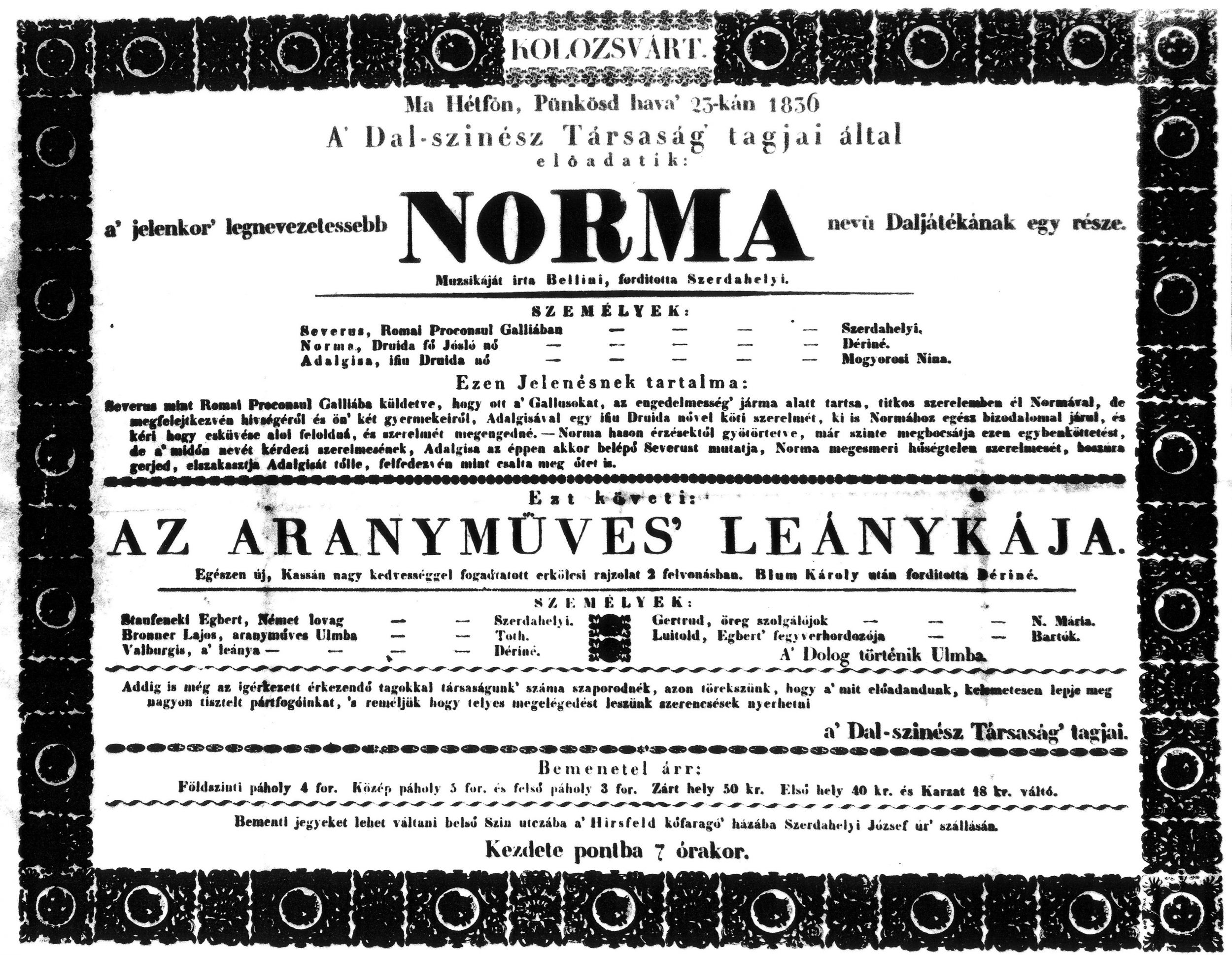- Attila vagy A szegény lantos, Ziegler után, 1836. júl. 7-én játszották