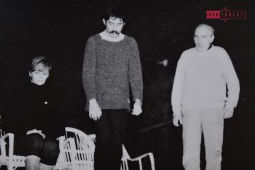 25. Sebők Klára (bohóc, sírásó), Tompa Gábor rendező és Borbáth András (balettművész, koreográfus)