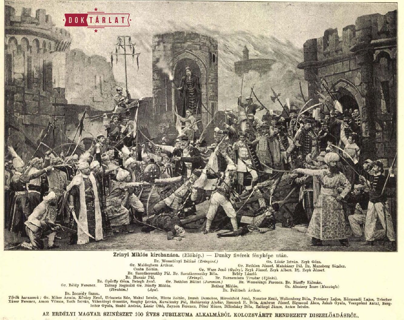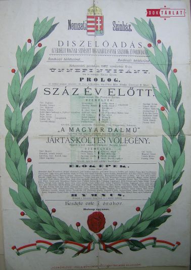 Acest lucru este foarte asemănător momentului care a încheiat programul festiv, cele două imagini din “Zrínyi” de Theodor Körner. În 1821, teatrul din strada Farkas a fost deschis cu această dramă, rolurile jucate de către aristocrați amatori, donatori care au sprijinit construcția teatrului.