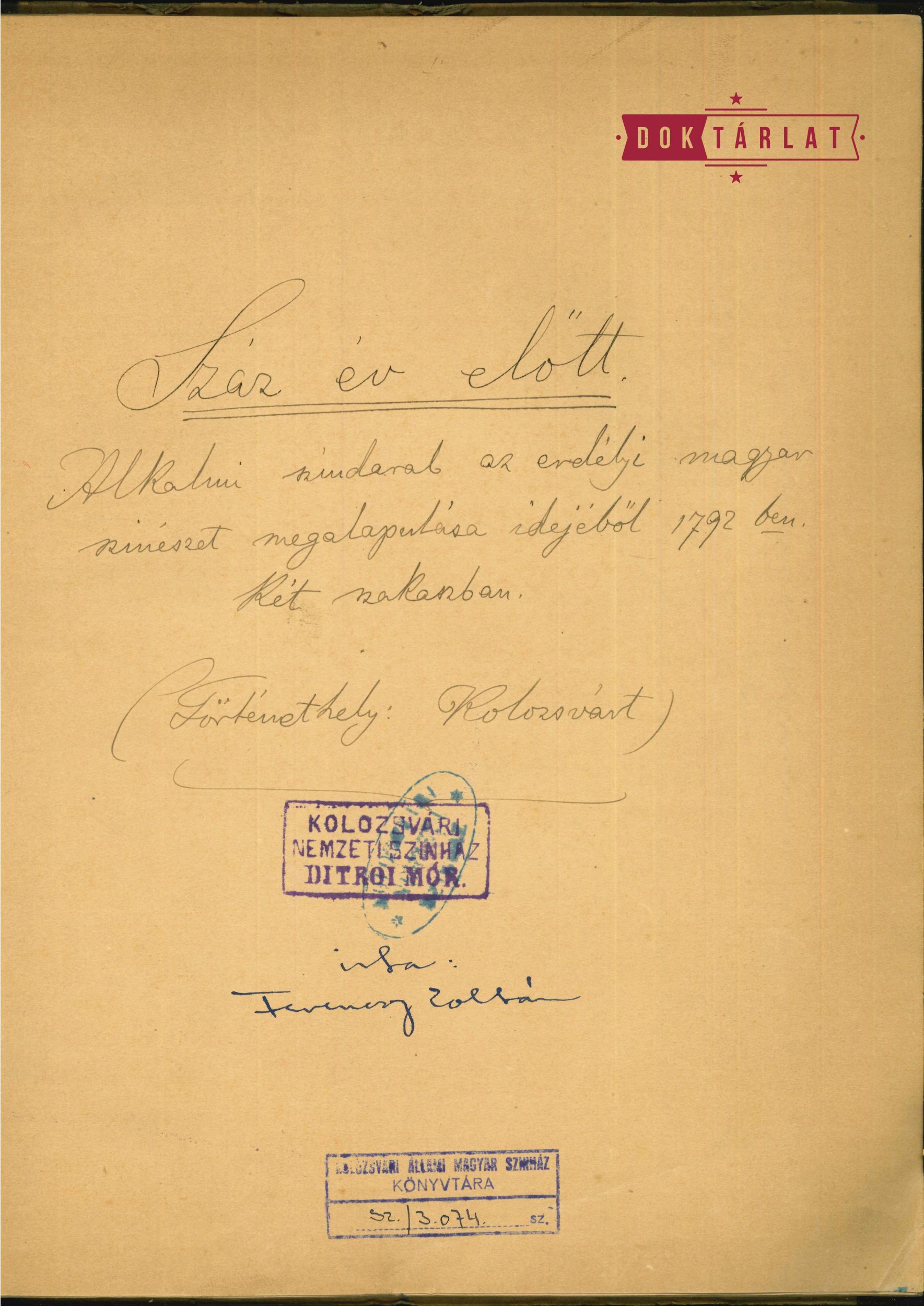 [1] Datorită cercetărilor lui Sándor Enyedi publicate în 1982, sărbătorim această aniversare pe 17 decembrie, el fiind cel care a găsit în revista Magyar Kurír 1793/2 - care a fost tipărită, dar cenzura a împiedicat distribuirea ei - un scurt reportaj despre prima conferință de la Cluj, programate inițial pentru 16 decembrie, dar care, din cauza morții unei persoane, probabil una importantă, a fost ținută pe 17. Sándor Enyrdi, "Când a avut loc primul spectacol de teatru la Cluj?", A Hét, 18 iunie 1982.