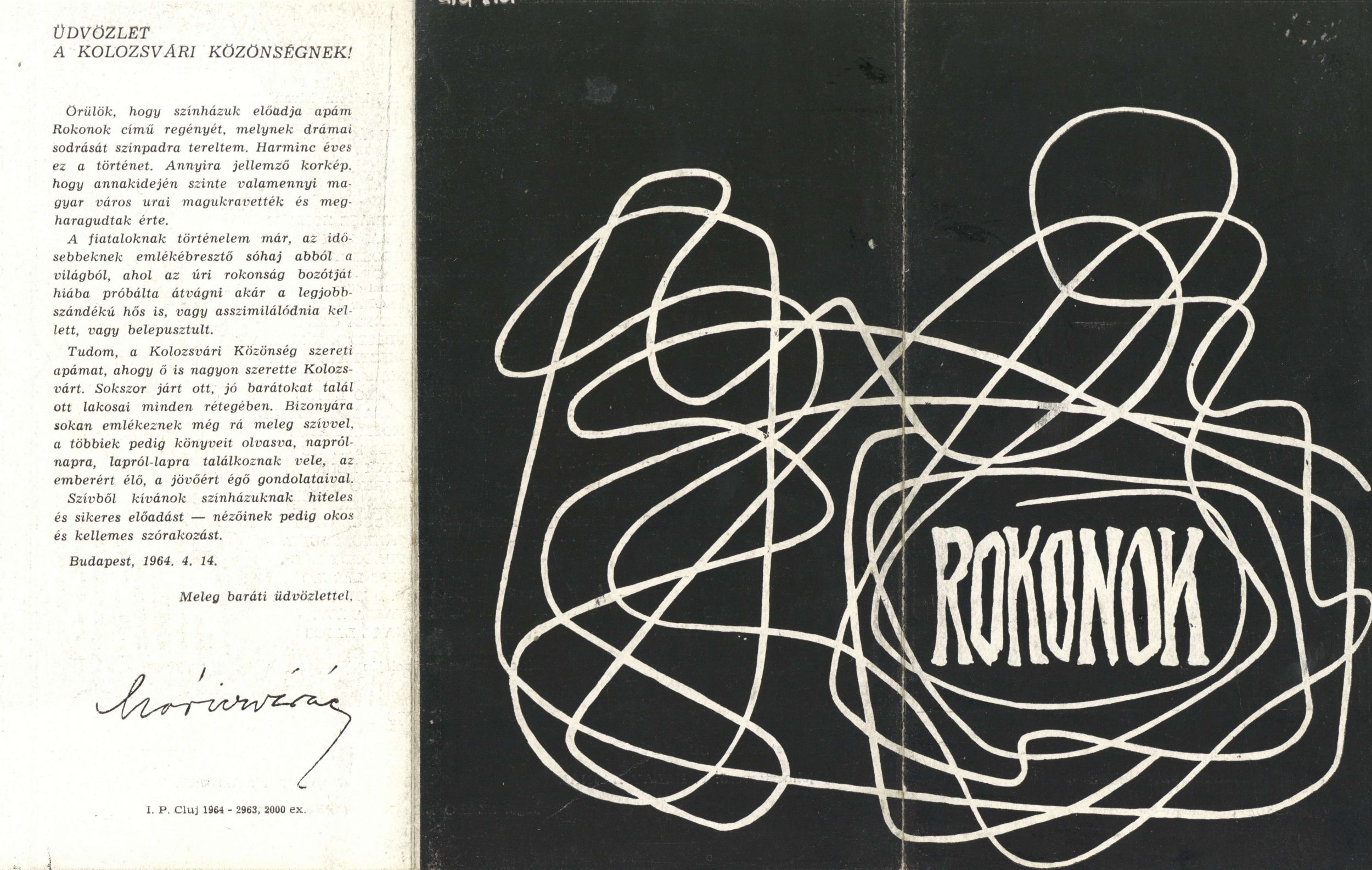 „Povestea asta este veche de 30 de ani. Ilustra atât de bine acele vremuri încât domnii din aproape toate orașele maghiare s-au supărat. (...) în zadar a încercat eroul pozitiv să străpungă scutul de rudenii, la final ori a fost asimilat, ori a pierit. Clujenii l-au iubit pe tatăl meu, la fel cum și el a iubit Clujul. A mers de multe ori la Cluj, unde și-a făcut prieteni din toate straturile sociale. Sunt sigură că mulți oameni încă își mai amintesc cu drag de el, iar cei care nu l-au cunoscut, citindu-i cărțile se întâlnesc zi de zi, pagină de pagină, cu gândurile lui, îl văd trăind pentru oameni, arzând pentru viitor. Îi doresc din suflet teatrului dumneavoastră un spectacol autentic și de succes – iar publicului o reprezentație inteligentă și plăcută." – așa sunau caldele urări de prietenie scrise de Virág Móricz, în aprilie 1964.